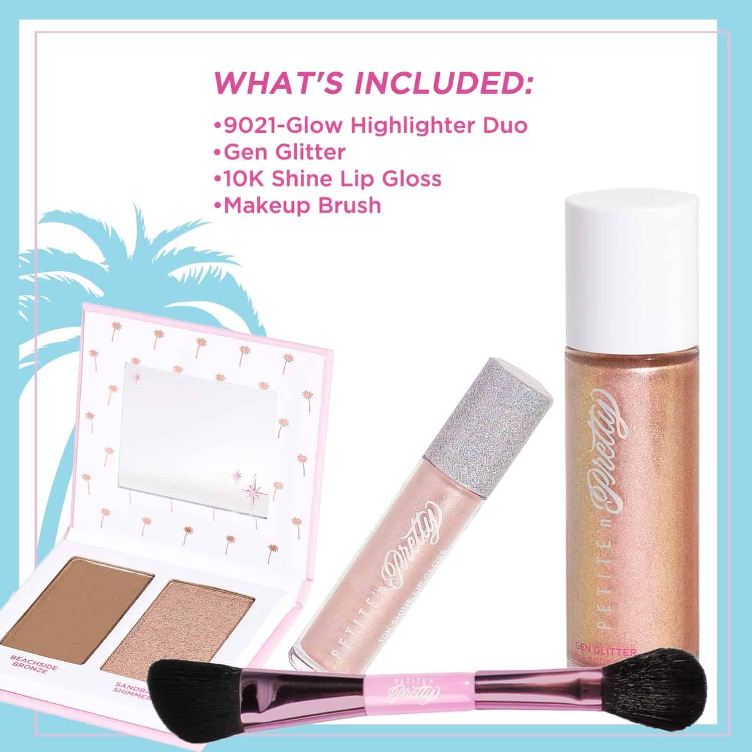 3. FÁCIL Y DIVERTIDO DE APLICAR: Mezcla Beachside Bronze en las mejillas, luego sigue con una capa de Sandbar Shimmer en los puntos altos del rostro que naturalmente capturan la luz. Aplica 10K Shine Lip Gloss en los labios limpios para un acabado de alto brillo y mezcla Gen Glitter en la piel limpia o cepilla el cabello seco.