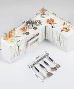 Detalles Incluye 4 muebles de cocina, 3 sartenes, 1 olla, 4 frascos de condimentos para espaguetis, 1 batidor de huevos, 4 utensilios de cocina de madera, 1 soporte de utensilios de cocina de cerámica, 1 espumadera, 1 cucharón, 2 espátulas, 1 estante de utensilios de cocina de metal, 1 tazón de cerámica con huevos. Como se muestra en la Figura 1. Material Los muebles de cocina están hechos de madera. El batidor de huevos, sartenes, olla, espumadera, cucharón, espátulas y estante de utensilios de cocina están hechos de aleación. El tazón con huevos está hecho de resina y cerámica. Todos los materiales son respetuosos con el medio ambiente y seguros, así que no tienes que preocuparte en absoluto. Nota No es apto para niños menores de 3 años, ya que estos productos contienen piezas pequeñas. Por favor, siéntete libre de enviarme un email si tienes alguna pregunta sobre el producto.