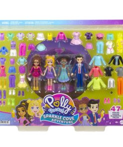 ¡Polly Pocket comparte una pasión por la moda en este Paquete de Moda Sparkle Cove Adventure con más de 45 piezas para divertirse mezclando y combinando! Este set incluye cuatro muñecas de 3 pulgadas: las muñecas Polly y Shani, además de dos nuevos amigos de la serie, Gilda Kapoor y Jake Tam. Los niños pueden intercambiar y diseñar conjuntos para los cuatro amigos todo el día con ropa y accesorios de moda que van desde uniformes deportivos hasta atuendos de fiesta y sus looks característicos. ¡Estilo para la competencia o la celebración! Con tantas opciones y tanto potencial de juego, este paquete de moda de Polly es un gran regalo para niños de 4 años en adelante. Los colores y decoraciones pueden variar.
