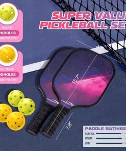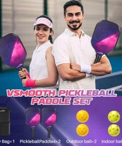 El conjunto de palas de pádel VOTMONI incluye todo lo que necesitas para disfrutar del emocionante y dinámico deporte del pádel. Cada conjunto contiene 2 palas de pádel de alta calidad, 4 pelotas de pádel y una bolsa de transporte fácil de llevar. Las palas de pádel están diseñadas pensando en la comodidad y el rendimiento de los jugadores, ofreciendo un agarre ergonómico y suave, una construcción duradera y ligera, y una amplia cara para mejorar la precisión y la potencia de los golpes. Con la variedad de estilos y colores disponibles, puedes elegir la raqueta de pádel que se adapte mejor a tu nivel de juego y estilo personal. Ya sea que estés jugando en casa, en la playa o en un club de pádel, este conjunto de palas de pádel es el compañero perfecto para cualquier ocasión. Aprovecha al máximo tu tiempo libre con esta increíble colección de palas de pádel.