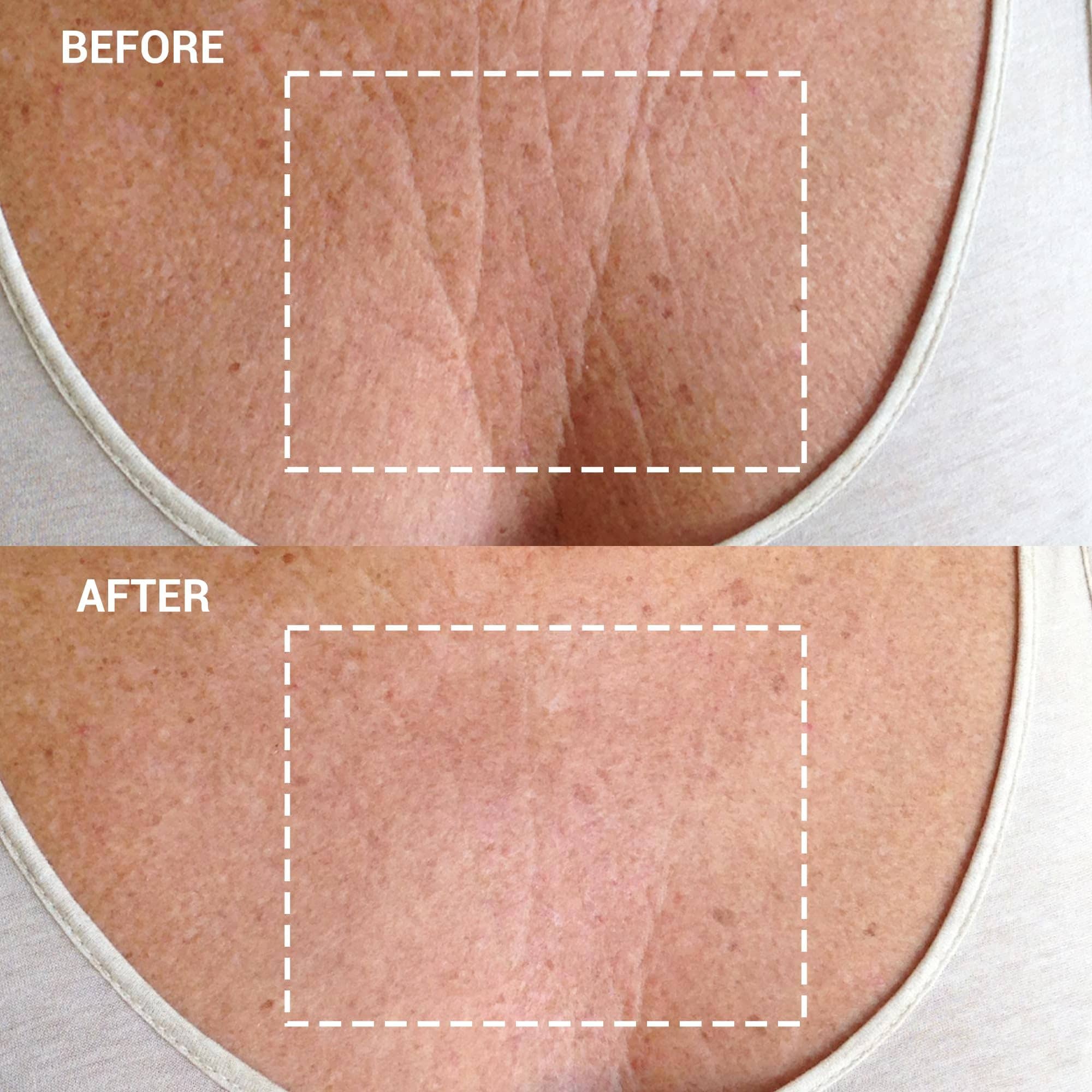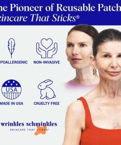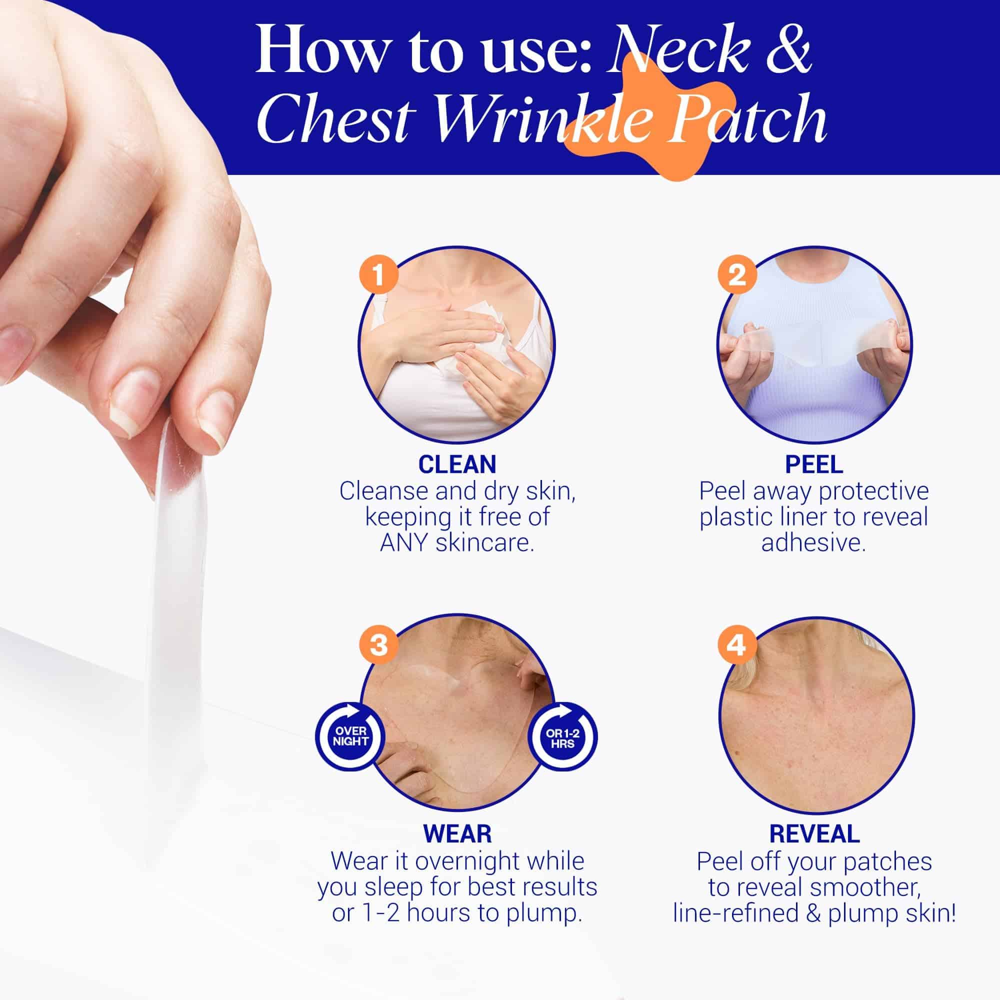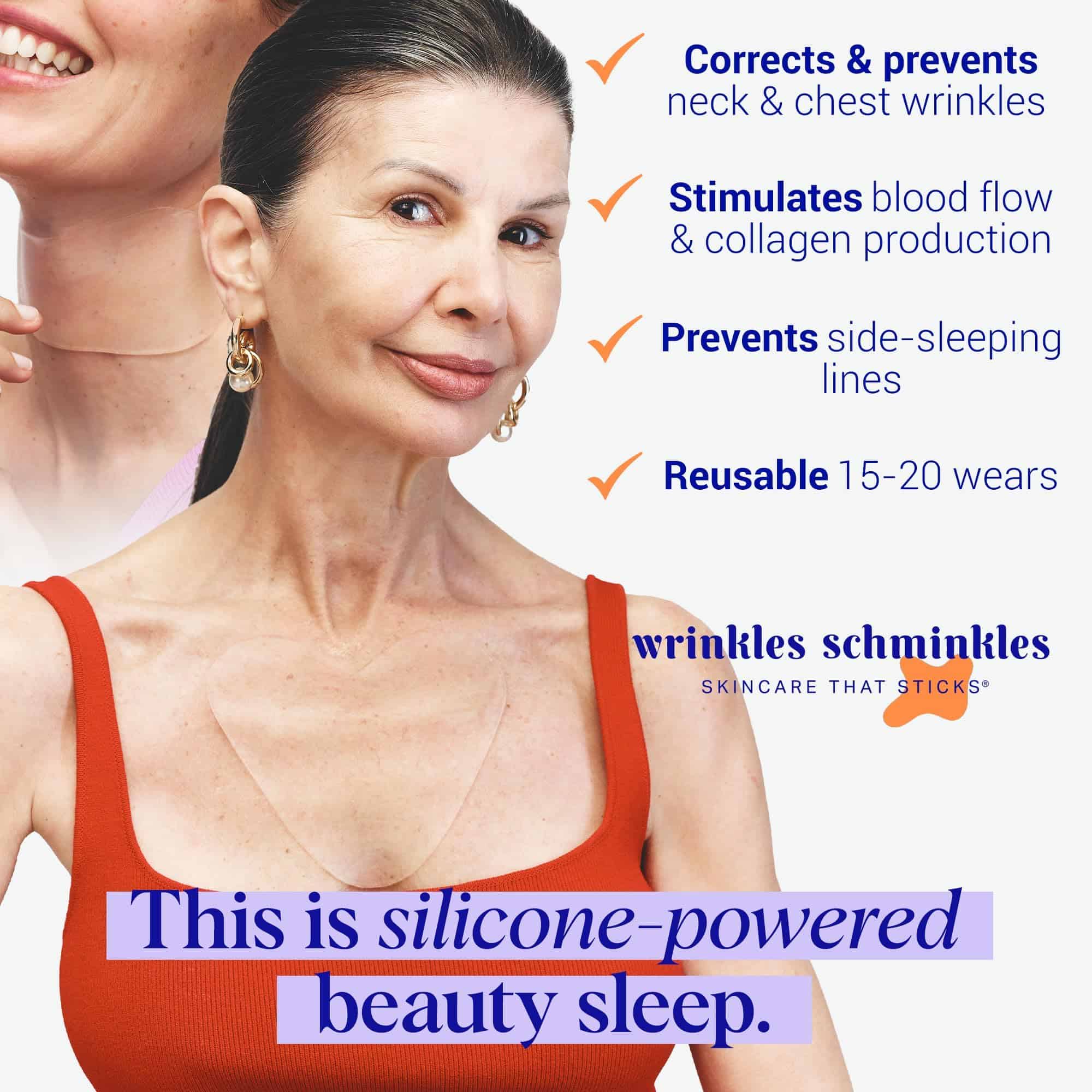 El Conjunto de Parches para el Cuello, Escote y Cuerpo de Wrinkles Schminkles incluye un Parche para el Cuerpo/Cleavage y un Parche para el Cuello. Los Parches suavizan y previenen las arrugas en el Cuello, Escote y Cuerpo al abrazar cómodamente la piel para evitar que se arrugue. Son ideales para prevenir y tratar las arrugas existentes, así como para las marcas de estiramiento en los muslos y brazos. Clínicamente probados para apoyar la capacidad natural de la piel para hidratarla, retener la humedad, estimular el flujo sanguíneo y aumentar la producción de colágeno, una proteína vital que perdemos a medida que envejecemos. ¡Obtén una piel suave y sin arrugas después de tu primer uso, con resultados aún mejores con el tiempo! Recomendados por dermatólogos, los Parches de Wrinkles Schminkles son hipoalergénicos y aptos para pieles sensibles, asegurando que no son tóxicos ni dañinos para tu piel.