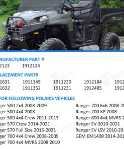 Conjunto de Pinza de Freno Delantero Izquierdo Derecho con Pastillas sin Soporte de Montaje apto para Polaris Side by Side como sigue: