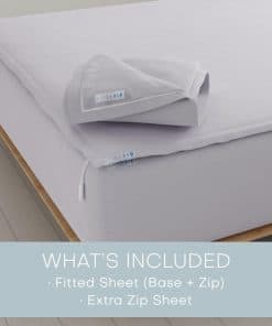 – 1 sábana ajustable (Base + Sábana con Cremallera) y 1 Sábana con Cremallera