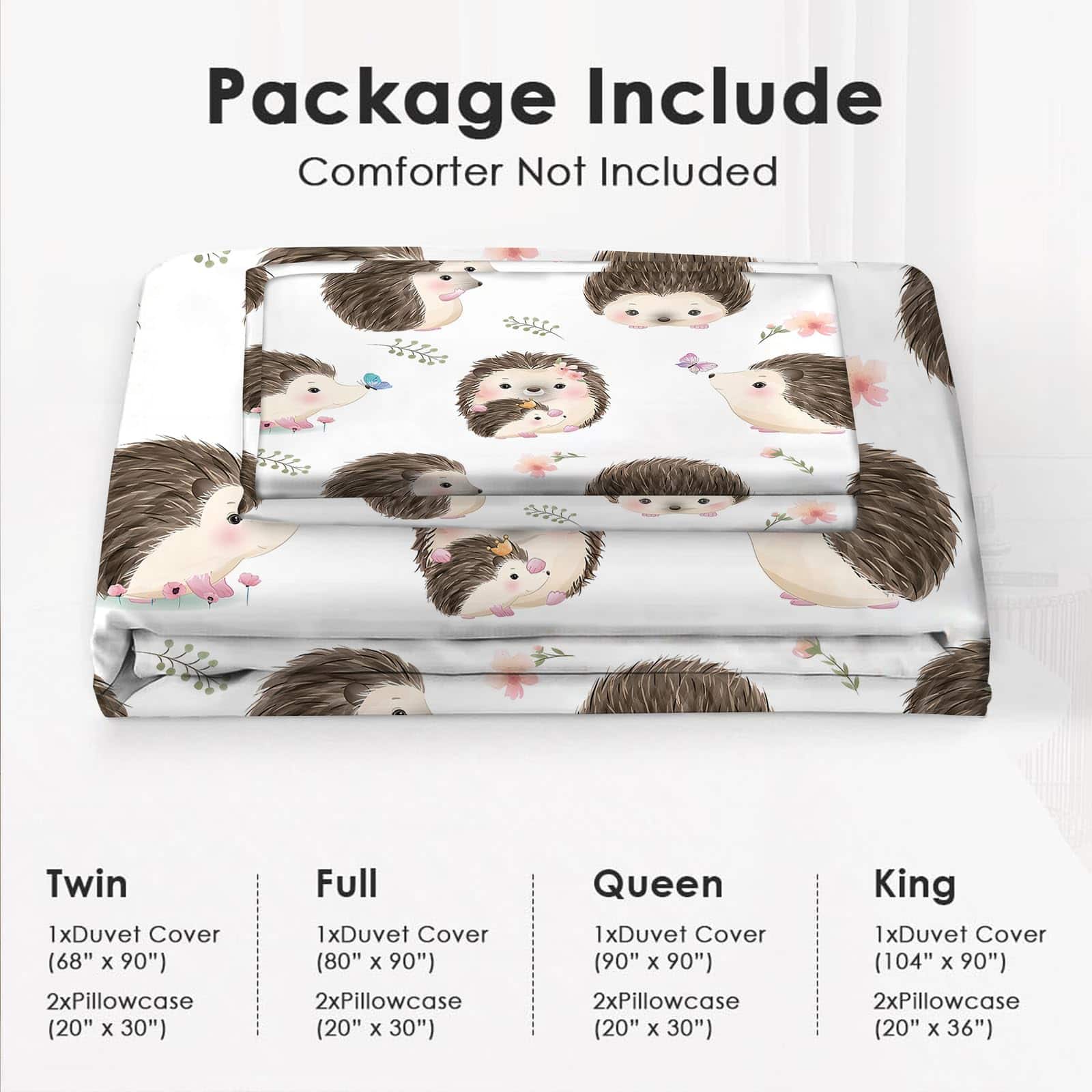 Tamaño queen: 1 Funda de Edredón (90″ x 90″) y 2 Fundas de Almohada (20″ x 30″). No Incluye Conforter en el Set.