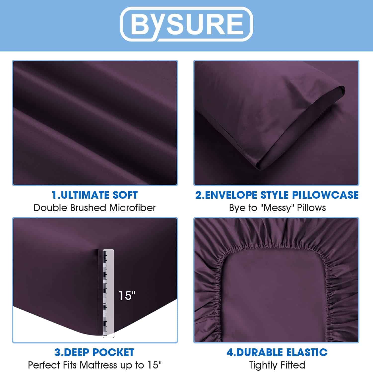 Conjunto de sábanas BYSURE de 6 piezas (Queen, Morado) -