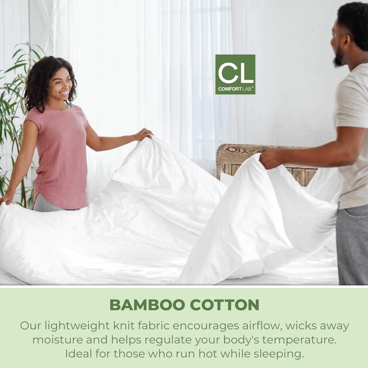El conjunto de sábanas Comfort Lab Full Jersey ofrece una experiencia de sueño excepcionalmente suave y cómoda. Diseñadas con una mezcla de rayón derivado de bambú y algodón, estas sábanas de punto de jersey consiguen una suavidad y confort inigualables. El tejido transpirable brinda un efecto refrigerante en climas cálidos y calor durante las temporadas más frías, asegurando un sueño placentero durante todo el año. El juego completo de 4 piezas incluye 1 sábana bajera, 1 sábana encimera de 81 pulgadas x 96 pulgadas (206 cm x 244 cm) y 2 fundas de almohada para una cama Full. Embaladas cuidadosamente en una bolsa de tela autoadherente, estas sábanas son ideales tanto para regalar como para disfrutar en casa. Con detalles de pespuntes para un toque elegante y una mayor durabilidad, las sábanas de jersey de Comfort Lab son fáciles de mantener, ya que son lavables a máquina y conservan su suavidad y calidad lavado tras lavado. Disfruta de un confort excepcional y un estilo elegante con las sábanas Comfort Lab Full Jersey, perfectas para todas las estaciones y todos los estilos de dormitorio.