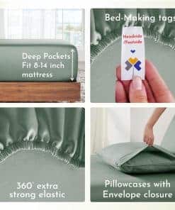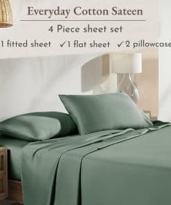 Conjunto de sábanas de cama King – Juego de sábanas de 4 piezas fabricado con tejido naturalmente cómodo de algodón 100% satén. Estas suaves y transpirables sábanas y fundas de almohada de enfriamiento están diseñadas para brindar comodidad duradera durante todo el año.