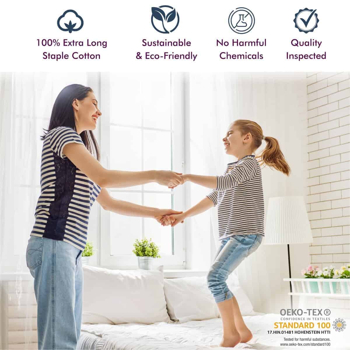 No solo hacemos excelentes productos, sino que también ofrecemos un servicio al cliente excepcional en caso de que tengas algún problema. Por cualquier razón, si no amas tus sábanas, devolveremos o reemplazaremos tu pedido según las pautas. Nuestros juegos de sábanas son perfectos para el Día de la Madre, el Día del Padre, Navidad o el Día de San Valentín. Lo mejor para cualquier habitación de tu casa – habitación de niños, habitación de invitados, dormitorio o casa de vacaciones.