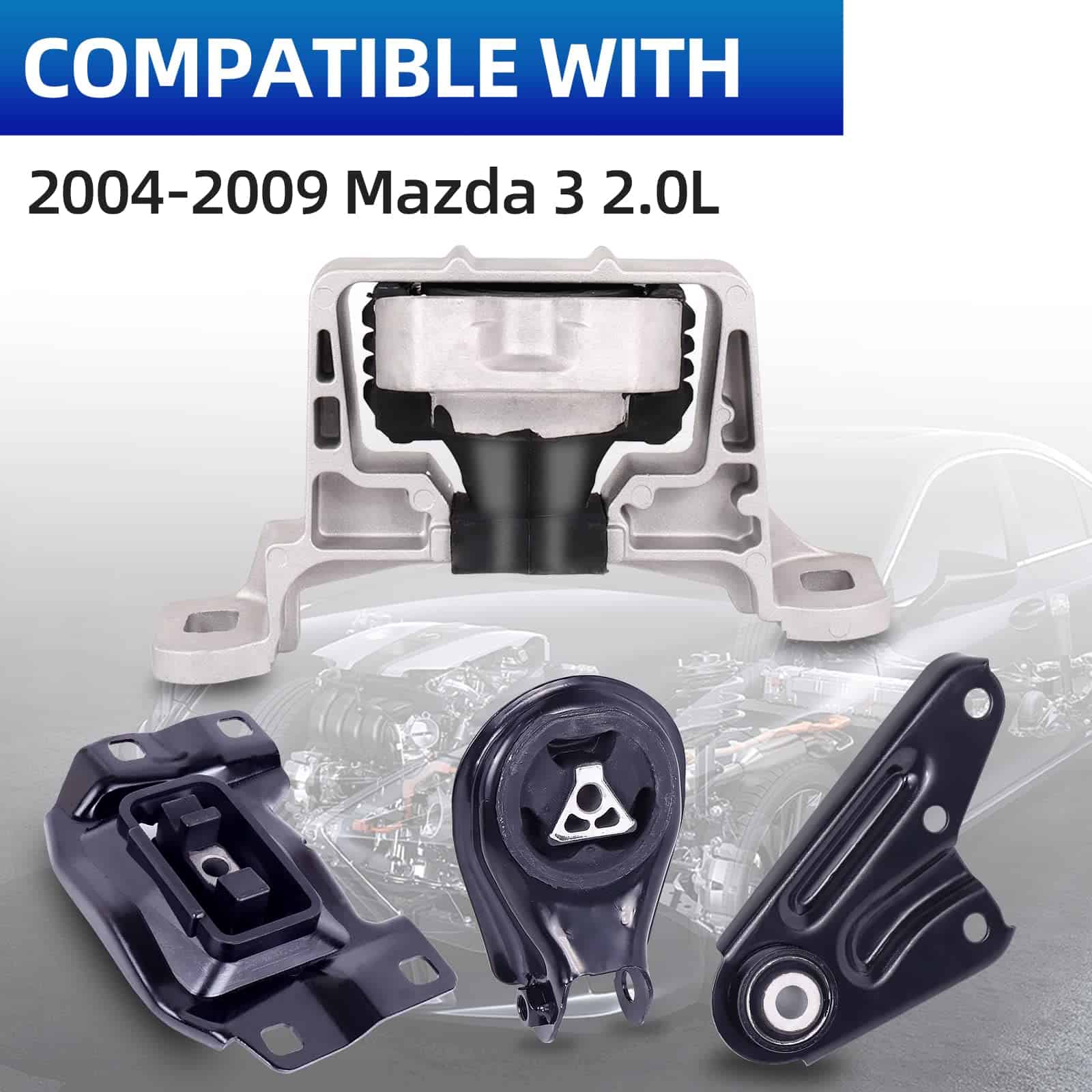Acero y caucho de alta calidad aseguran un paseo suave y silencioso Incluye (juego de 4 piezas) A4402: Soporte de motor trasero A4404: Soporte de transmisión automática-izquierdo A4405: Soporte de motor delantero derecho A4418: Soporte de motor delantero Compatible con Fits 2004 2005 2006 2007 2008 2009 Mazda 3 2.0L