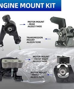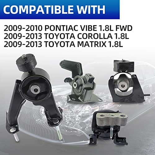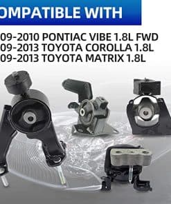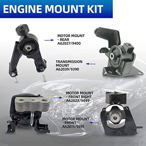 El acero y el caucho de alta calidad garantizan un viaje suave y silencioso. Incluye (conjunto de 4 piezas) A62015: Soporte de motor trasero A62023: Soporte de transmisión automática-izquierda A62027: Soporte de motor delantero derecho A62022: Soporte de motor delantero. Compatible con Toyota Corolla 1.8L y Toyota Matrix 1.8L 2009-2014