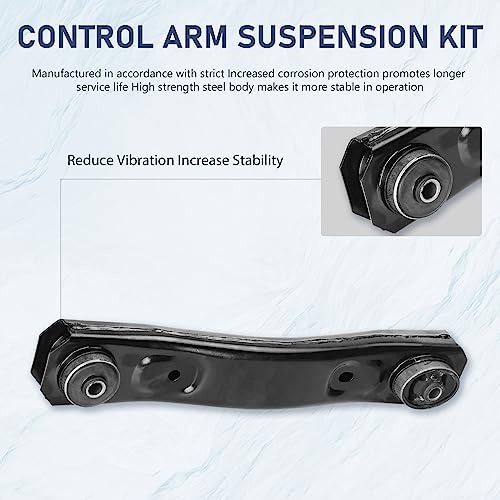 Brazo de control: Como elemento guía y de transmisión de fuerza del sistema de suspensión del automóvil, el brazo de control transmite diversas fuerzas que actúan sobre la rueda al cuerpo, y al mismo tiempo asegura que la rueda se mueva según una trayectoria determinada. El brazo de control del automóvil conecta de forma elástica la rueda y el cuerpo a través de la junta esférica o el buje respectivamente. Incluye: 2x Brazos de Control Superior Delanteros, 2x Brazos de Control Inferiores Delanteros. Número de parte de referencia: K640797 K640773. Compatible con Jeep: 1999 2000 2001 2002 2003 2004 Jeep Grand Cherokee. Características: Mayor comodidad, larga vida útil, mayor protección contra la corrosión, fácil de instalar. NOTA: ¡Por favor, verifique la tabla de ajuste y la información con cuidado para una información precisa!
