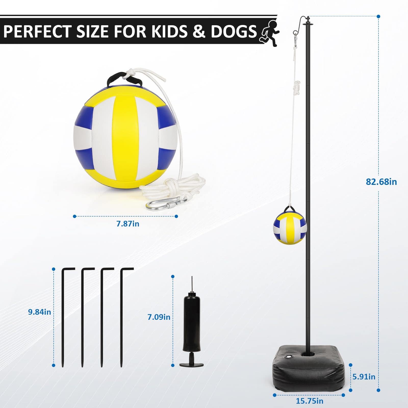 4. Altura Adaptable: Hay cuatro postes de metal ajustables en la mitad del juego de pelota y cuerda de tetherball con poste, que es fácil de instalar y también puede adaptarse perfectamente a la altura de adultos, niños y perros, brindándoles la mejor experiencia de juego.