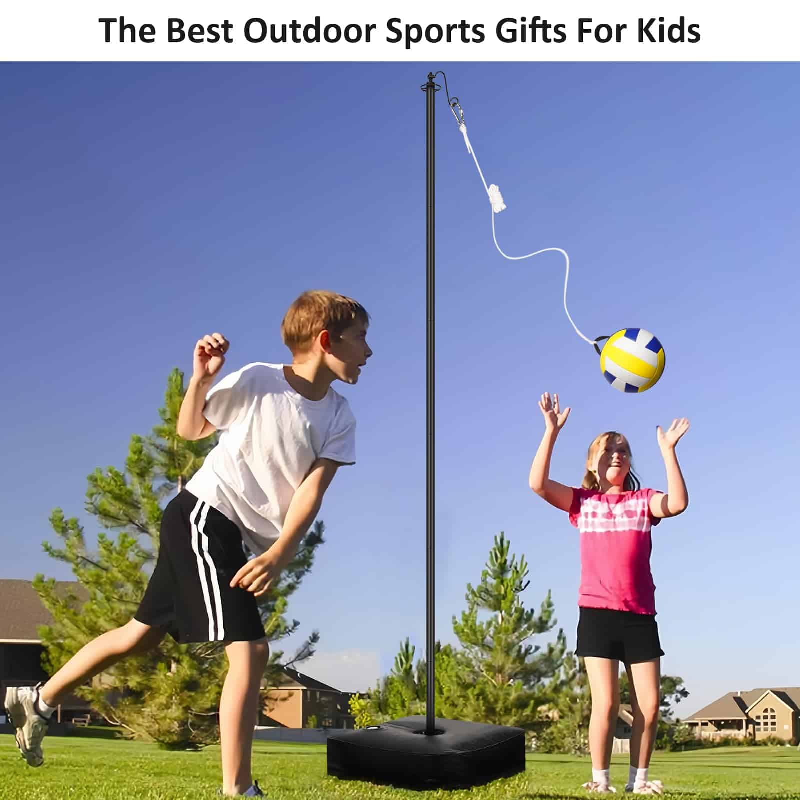 5. Juego al Aire Libre Perfecto: Este juego de pelota de tetherball no solo te hará recordar los juegos al aire libre antiguos, sino que también permitirá que tus hijos experimenten los juegos clásicos de patio de recreo y disfruten juntos del tiempo de juego.