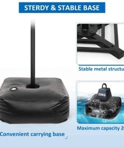 3. Base Estable: La base del tetherball consiste en una bolsa de llenado de agua, una base de metal y estacas para el suelo. Adopta el método de llenado de agua, que es conveniente de transportar y adecuado para céspedes, patios traseros, playas y otras escenas.