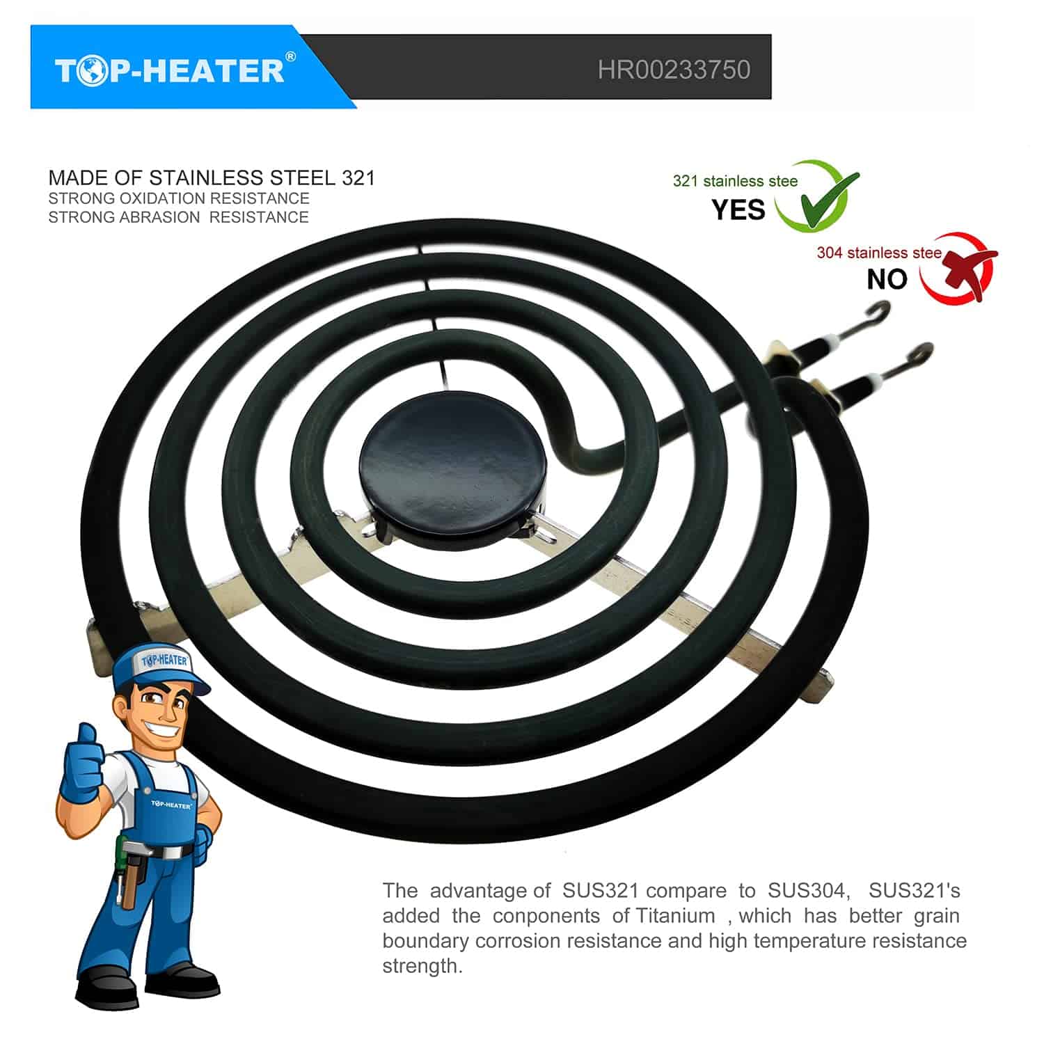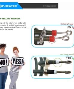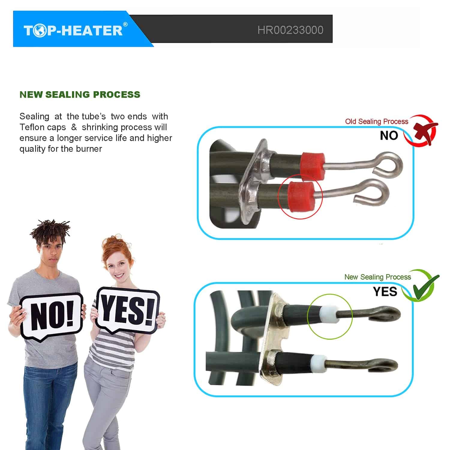 3. MATERIAL Y DISEÑO Hecho de acero inoxidable 321, que tiene mayor resistencia a la temperatura, mayor resistencia a la oxidación, mejor resistencia al desgaste que la mayoría de las piezas de repuesto para quemadores de estufa en el mercado. Nuestro reemplazo de quemadores de estufa adopta un nuevo proceso de sellado que se sella con tapas de teflón y se encoge en los dos extremos. En comparación con el antiguo proceso de sellado, el nuestro garantiza una vida útil más larga del elemento de rango, mejora la seguridad y evita las fugas causadas por la humedad aunque no se utilice durante mucho tiempo.