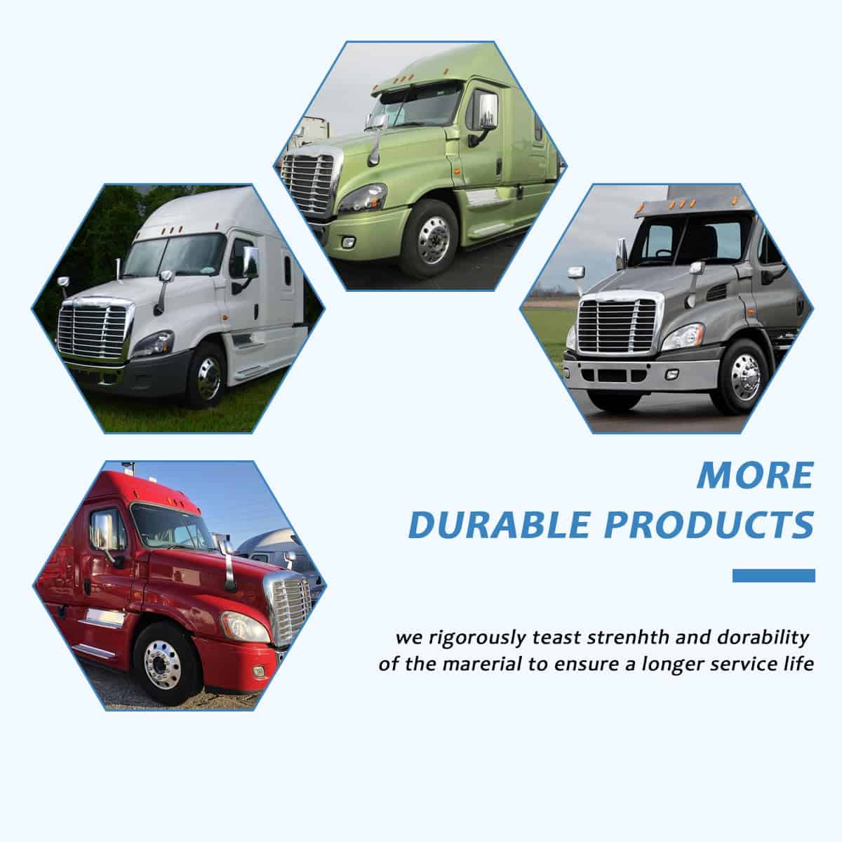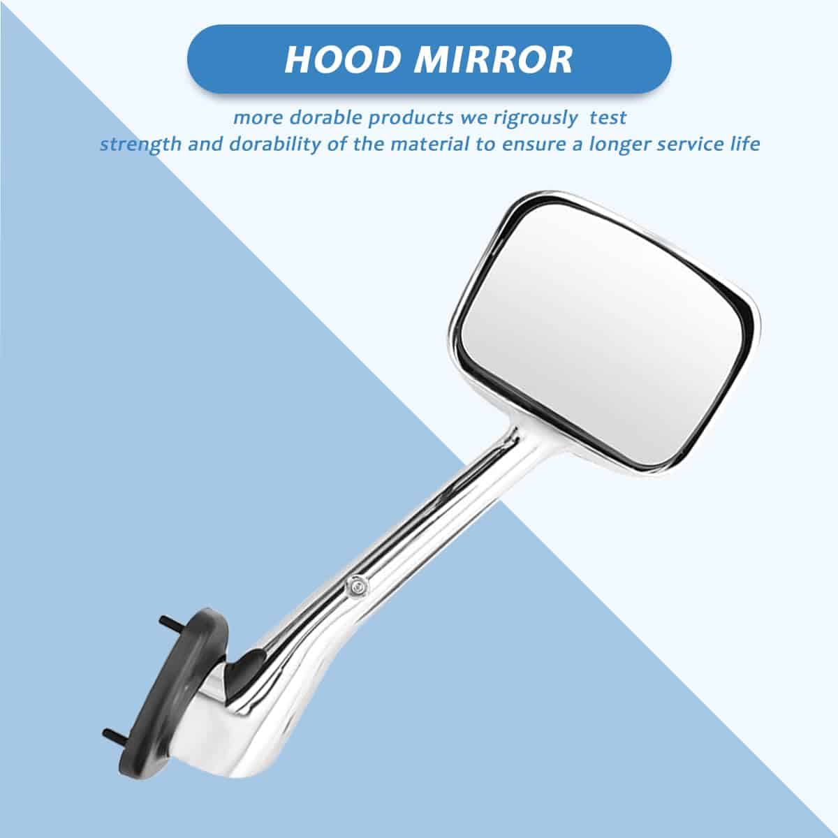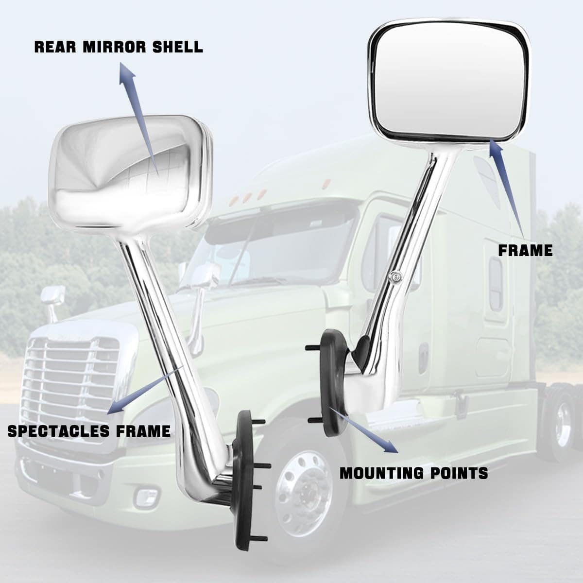 Este conjunto de espejos para capó derecho está especialmente diseñado para ser compatible con Freightliner Cascadia fabricados entre los años 2008 y 2017. Los espejos están acabados en cromo para un aspecto elegante y están fabricados con materiales de alta calidad, incluyendo plástico y vidrio duradero.