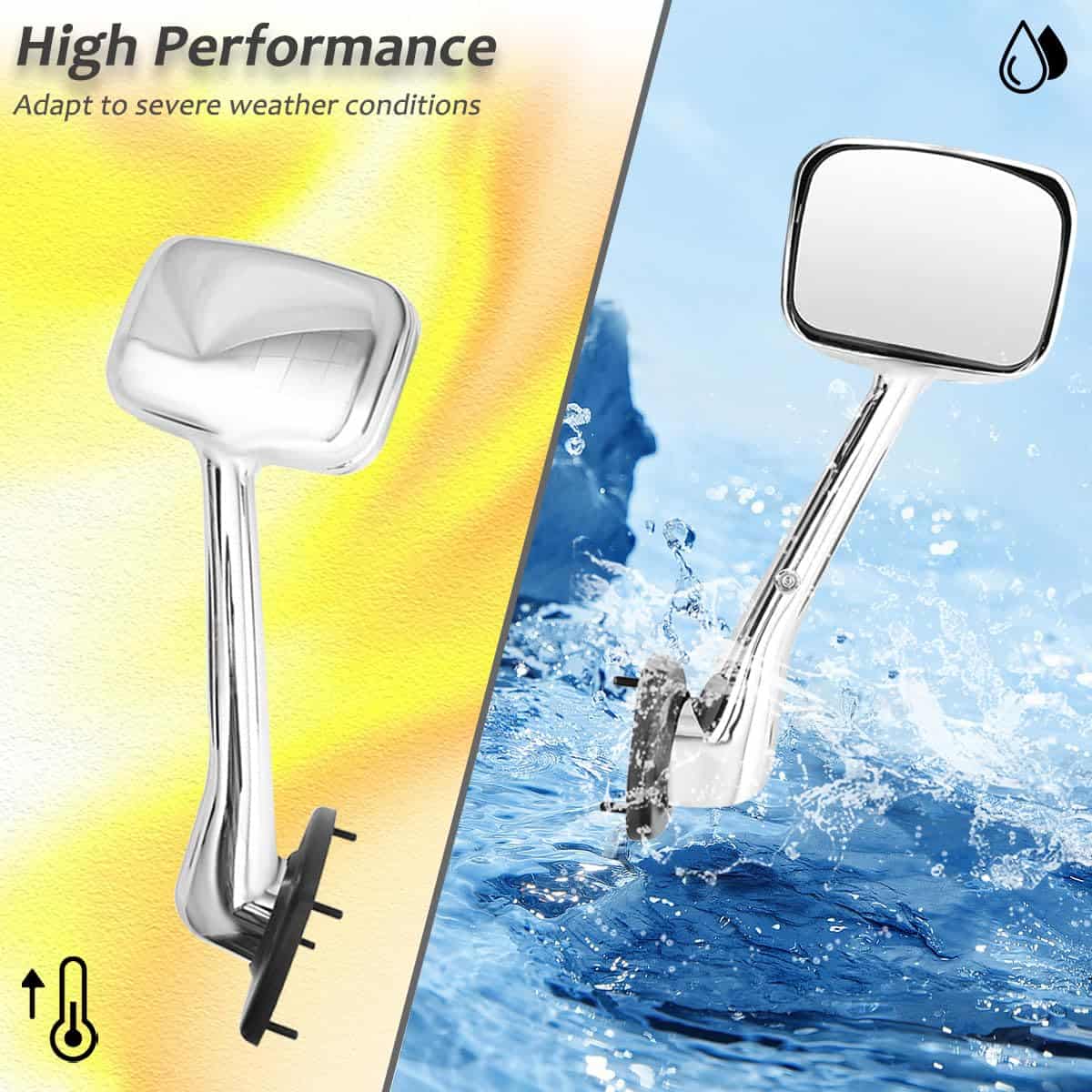 Este conjunto de espejos es resistente al agua y fácil de limpiar, lo que los hace ideales para su uso en todo tipo de condiciones climáticas. Para garantizar la satisfacción del cliente, estamos comprometidos a brindar el mejor servicio y calidad del producto. Si tiene alguna pregunta o inquietud, no dude en ponerse en contacto con nosotros.