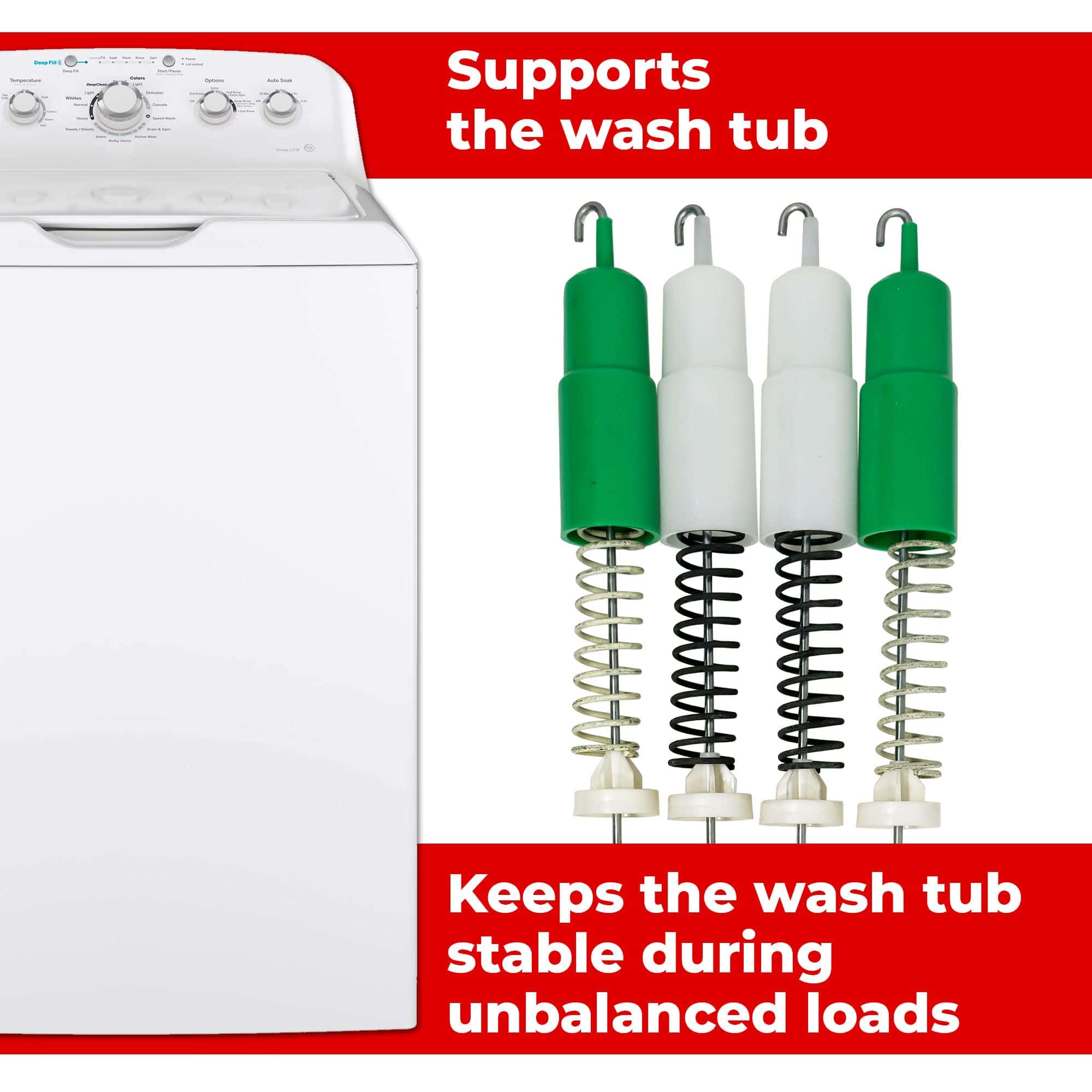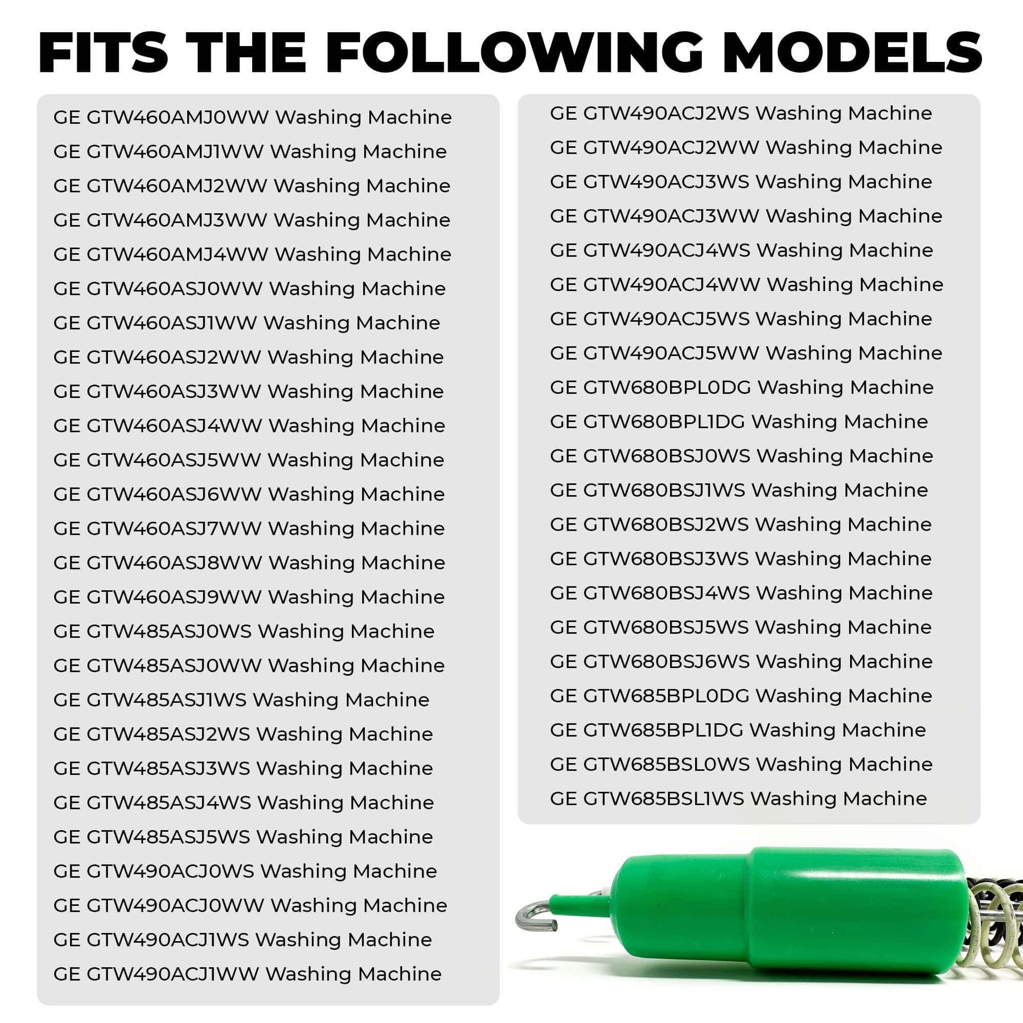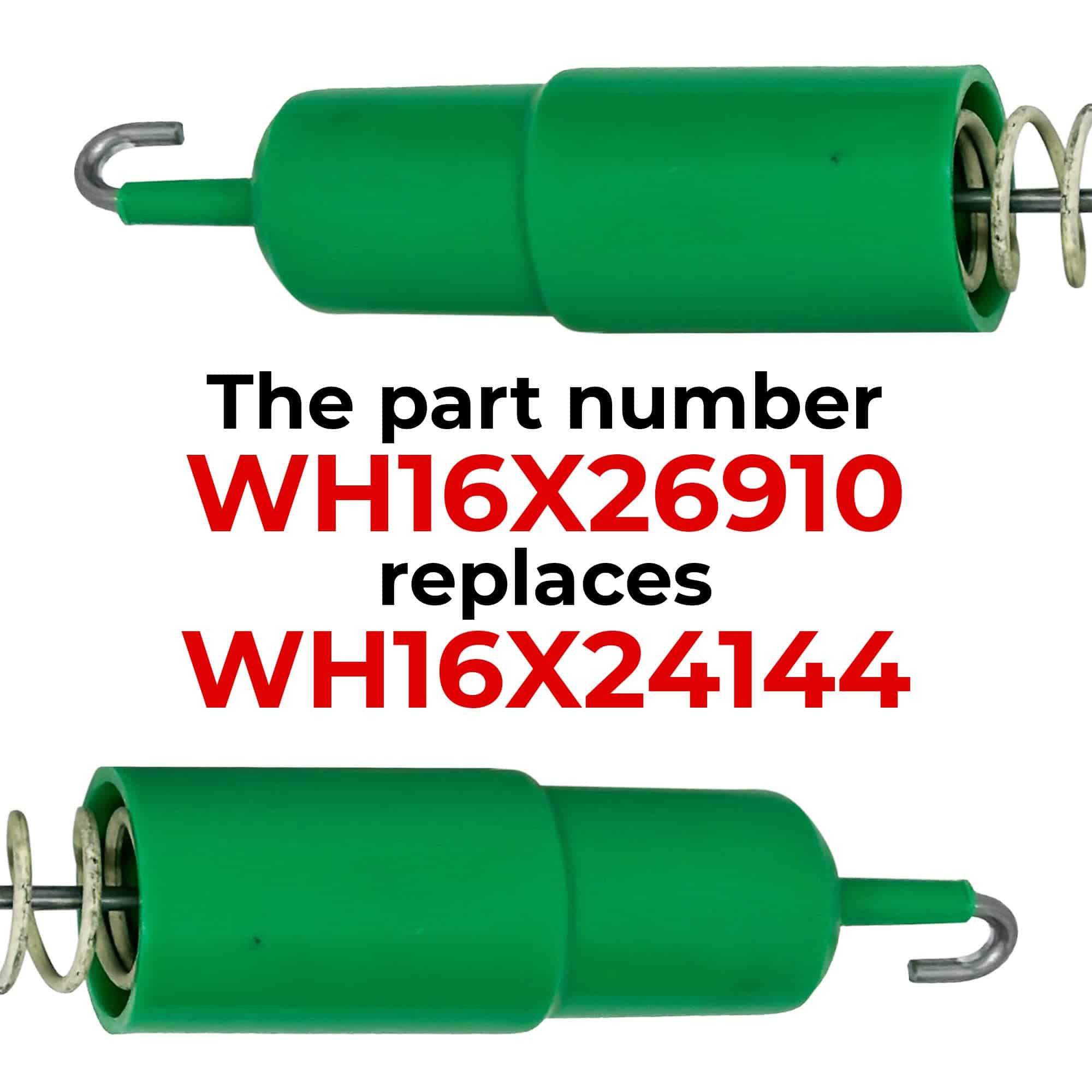 Este conjunto original de 4 varillas de suspensión de lavadora WH16X26911 y WH16X26910, junto con el kit de montaje de resortes, contiene 2 varillas de suspensión verdes y 2 varillas de suspensión blancas, cada una de 24.5/8 pulgadas de longitud. La varilla de suspensión actúa como un amortiguador para reducir la vibración y el ruido durante el ciclo de lavado de su lavadora. Las varillas de suspensión de alta calidad garantizan una estabilidad óptima y un funcionamiento suave de su lavadora. Este conjunto viene con una garantía de 1 año para su tranquilidad, respaldando la calidad y rendimiento del producto. Antes de realizar su pedido, contáctenos para asegurarse de la compatibilidad con el modelo específico de su lavadora. Nuestro equipo de soporte al cliente con conocimientos está disponible para ayudarlo y verificar que este conjunto sea el ajuste correcto para su electrodoméstico. Encuentre la compatibilidad de sus piezas fácilmente presionando la combinación de teclas adecuada en su dispositivo.