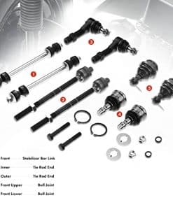 Este kit de suspensión de dirección es una solución ideal para problemas como ruido al girar, dirección errática, desgaste desigual de neumáticos, vibraciones excesivas y manejo deficiente. Compatible con Ford Ranger 1998-2001 y Mazda B2500 1999-1999 B3000 1998-2001 B4000 1998-2001. Números de referencia: K8738, K7275, K8695T, EV317, ES3461.