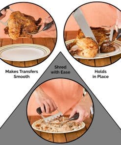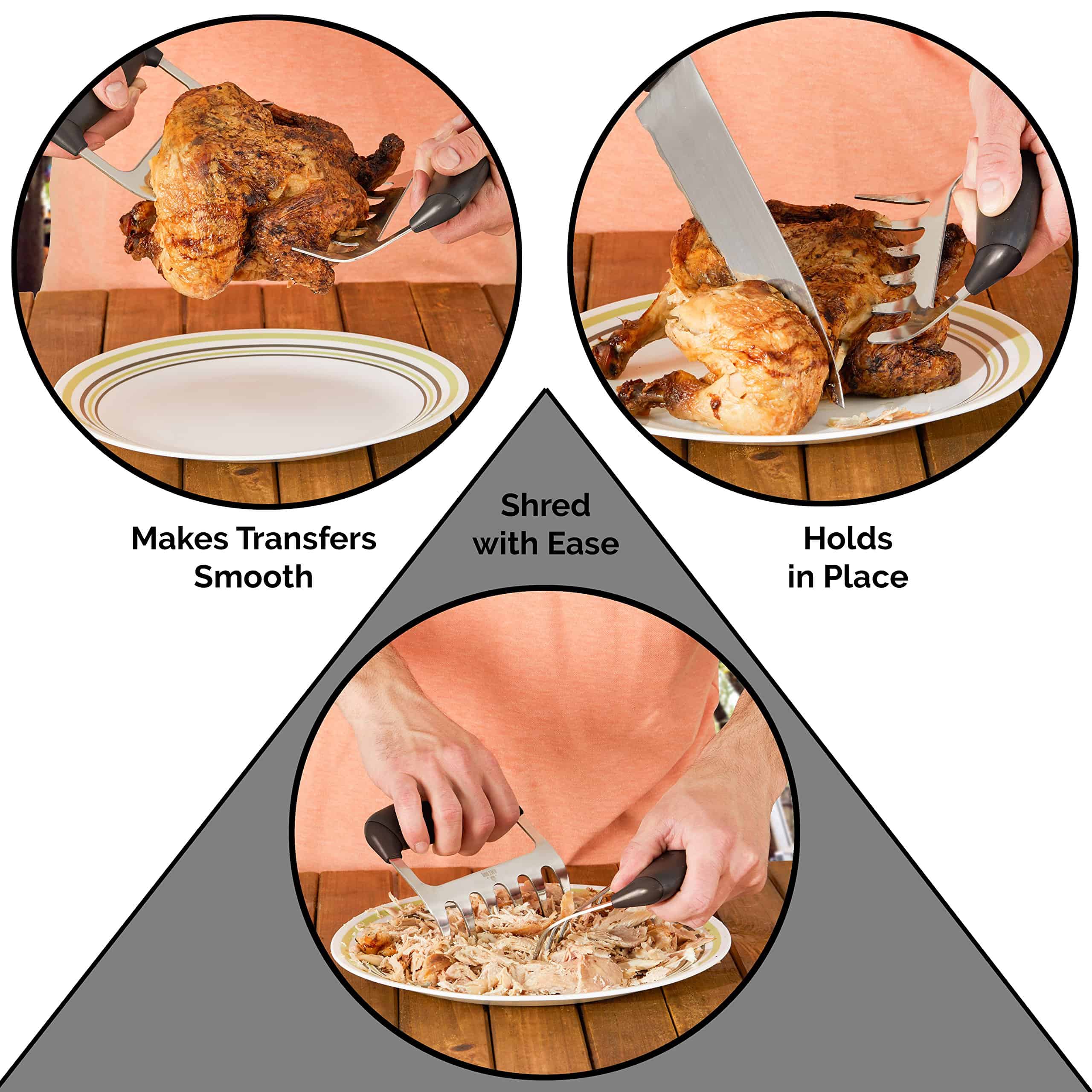 2. GARRAS ESENCIALES: Nuestras resistentes garras para desmenuzar carne son para parrillas serias. Hechas de acero inoxidable de alta calidad, estas versátiles garras para desmenuzar carne de cerdo son perfectas para desmenuzar carne, desmenuzar cerdo y recoger cortes grandes de carne con facilidad. No solo hacen la preparación rápida y sin esfuerzo, sino que garantizarán una carne deliciosa y tierna cada vez. ¡Dile adiós a las dificultades con cortes difíciles de carne y mejora tu juego de parrilla con nuestras resistentes garras de acero para desmenuzar carne!