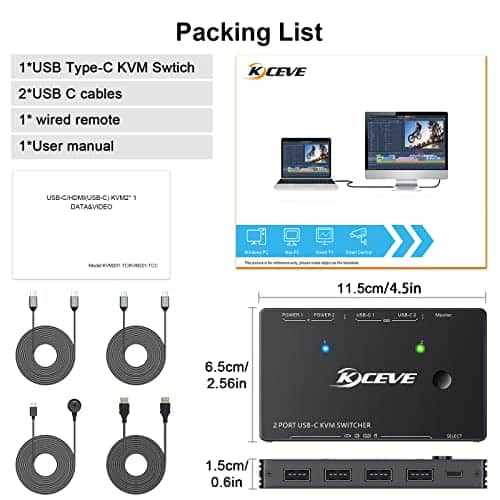 Conmutador KVM USB-C, 2 Puertos Switcher Type-C Compatible