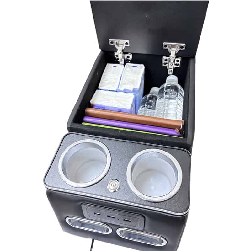 Utiliza el espacio Dispone de un amplio espacio de almacenamiento para artículos pequeños como cuadernos, botellas de agua, papel de seda y tarjetas de negocios. Viene con portavasos doble que es conveniente para que los pasajeros del asiento trasero coloquen botellas de agua o bebidas, para que el asiento trasero se despida del desorden. Espacio adicional para almacenar el teléfono. Además de almacenar varios artículos, permite descansar el brazo izquierdo y la muñeca del pasajero.