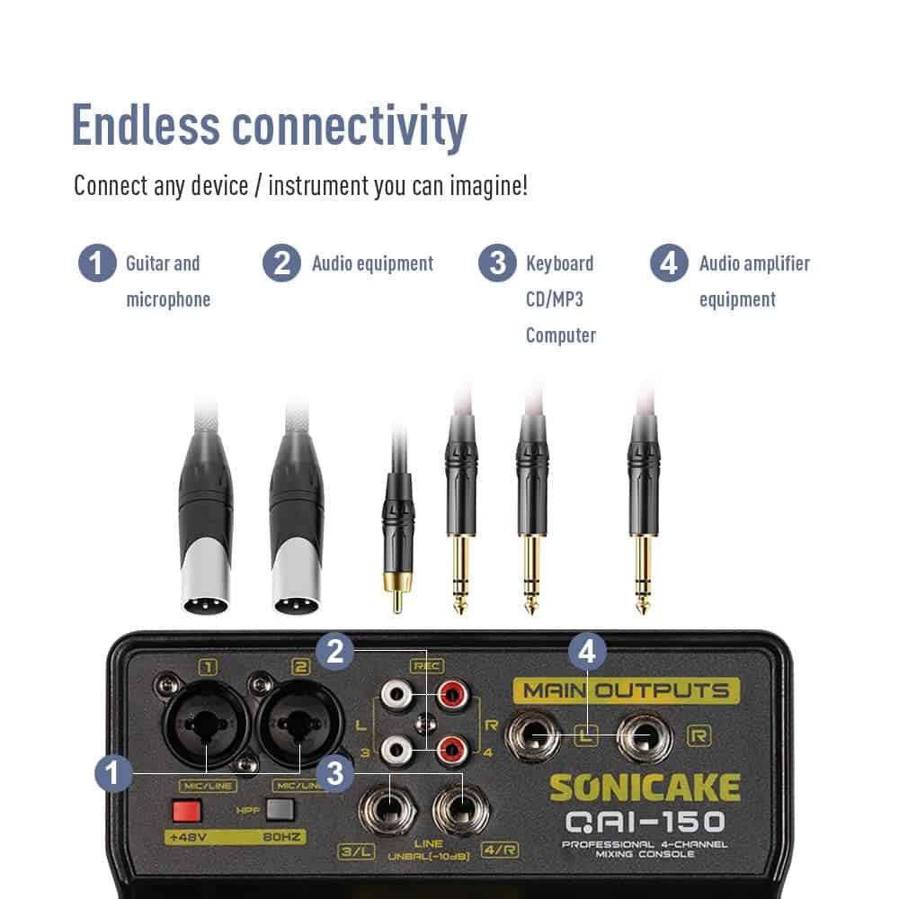 Consola de Mezcla de 4 Canales SONICAKE Profesional con