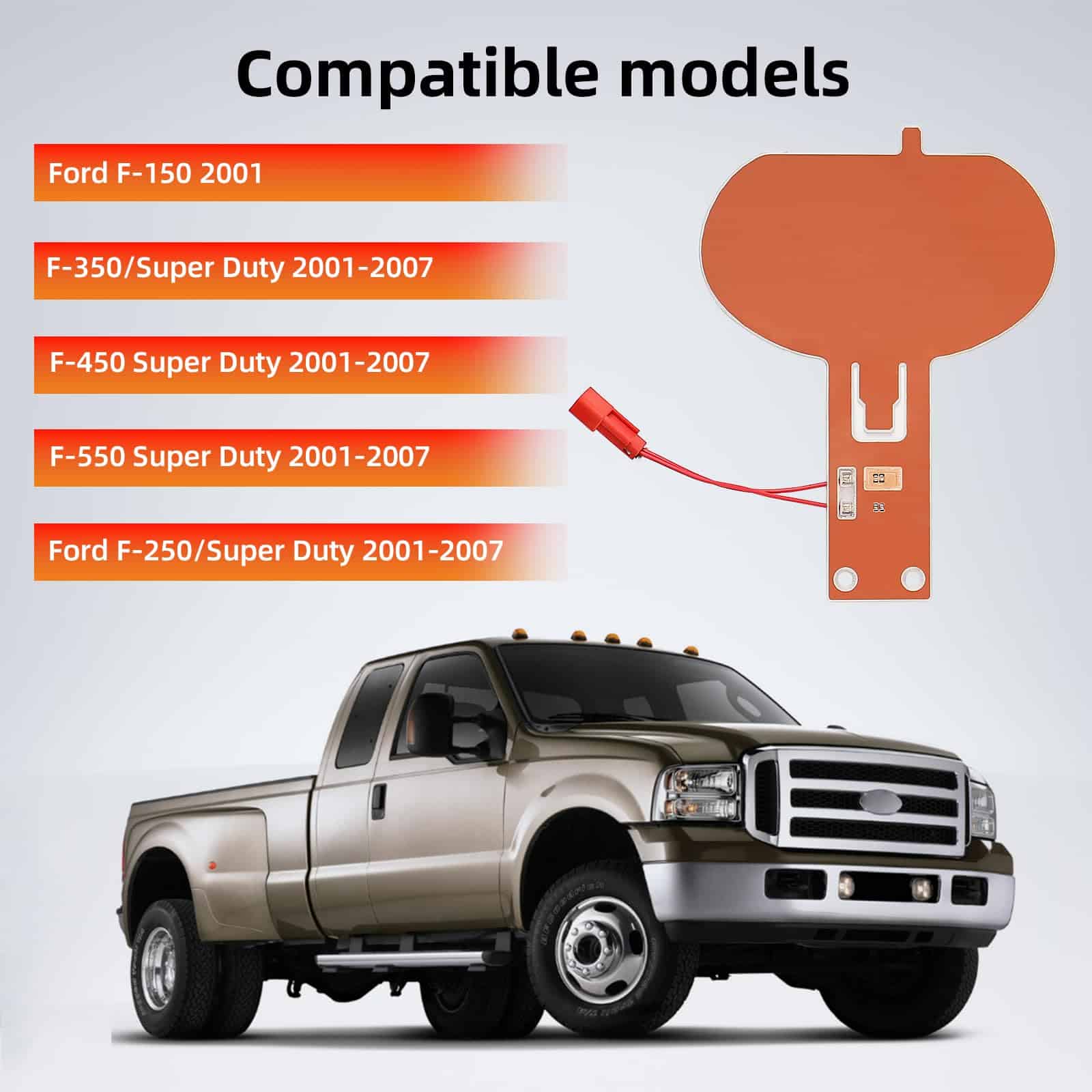 1. Compatibilidad Compatible con Ford F-150 2001, Ford F-250/Super Duty, F-350/Super Duty, F-450 Super Duty, F-550 Super Duty 2001-2007.