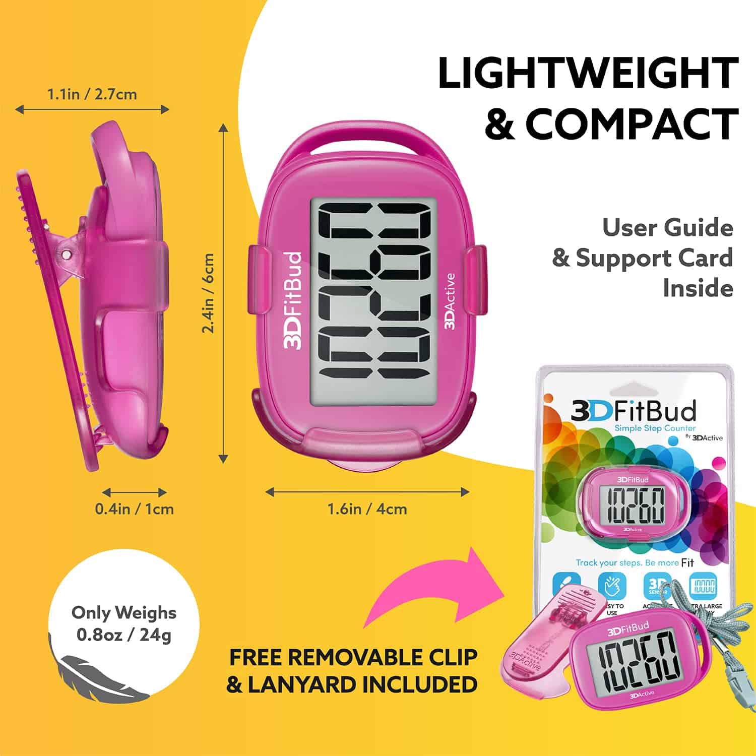 3. LECTURA PRECISA: Tiene tecnología avanzada de sensor 3D Tri-Axis – mucho más precisa que la mayoría de los podómetros. La tecnología del sensor 3D Tri-Axis es conocida por proporcionar una precisión superior en la lectura de pasos en cualquier posición: arriba, abajo, plano de lado, o en cualquier ángulo. Opciones de uso múltiple: Clip a su bolsillo o cadera, use alrededor de su cuello o colóquelo en su bolsillo o bolso.