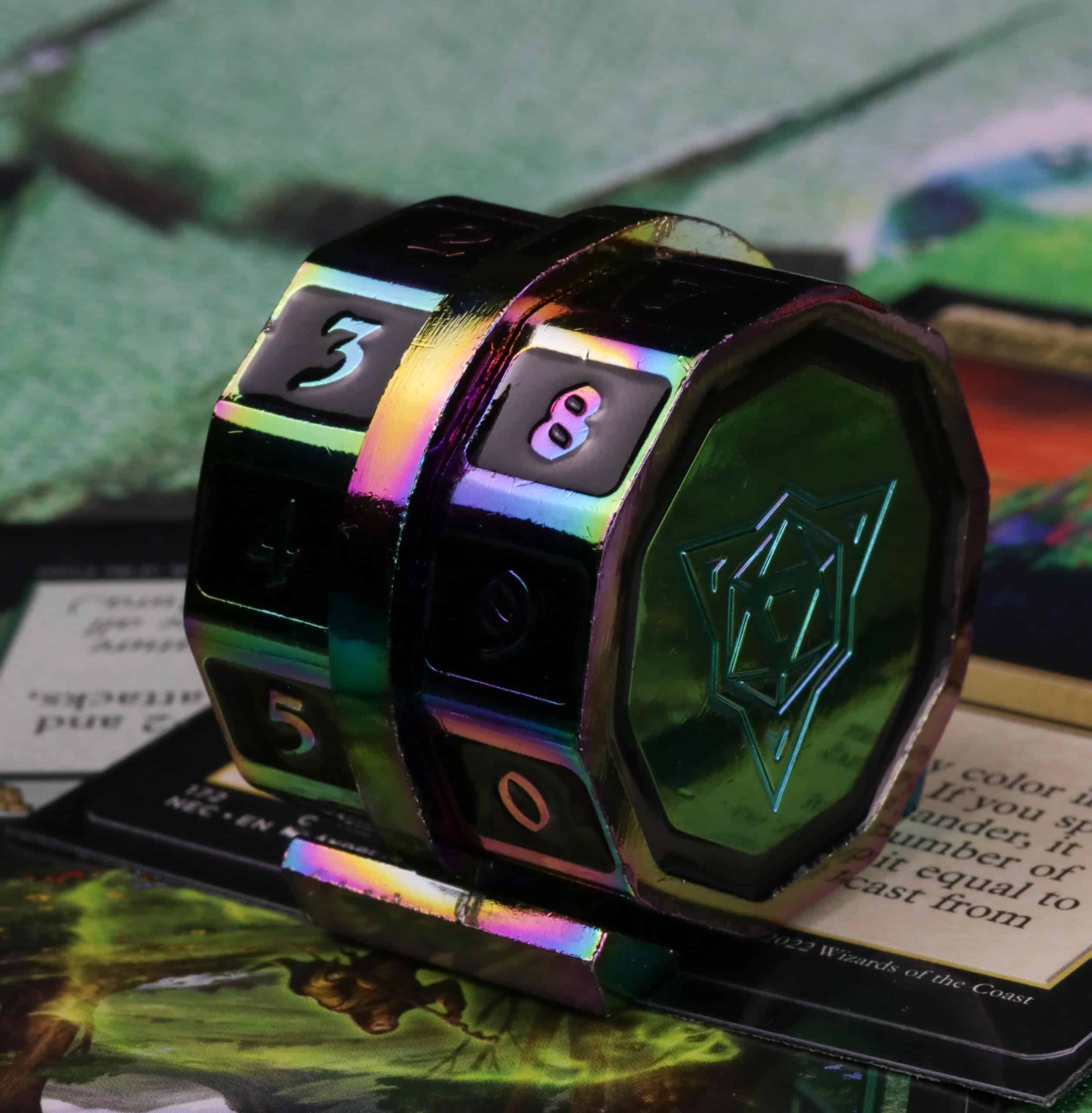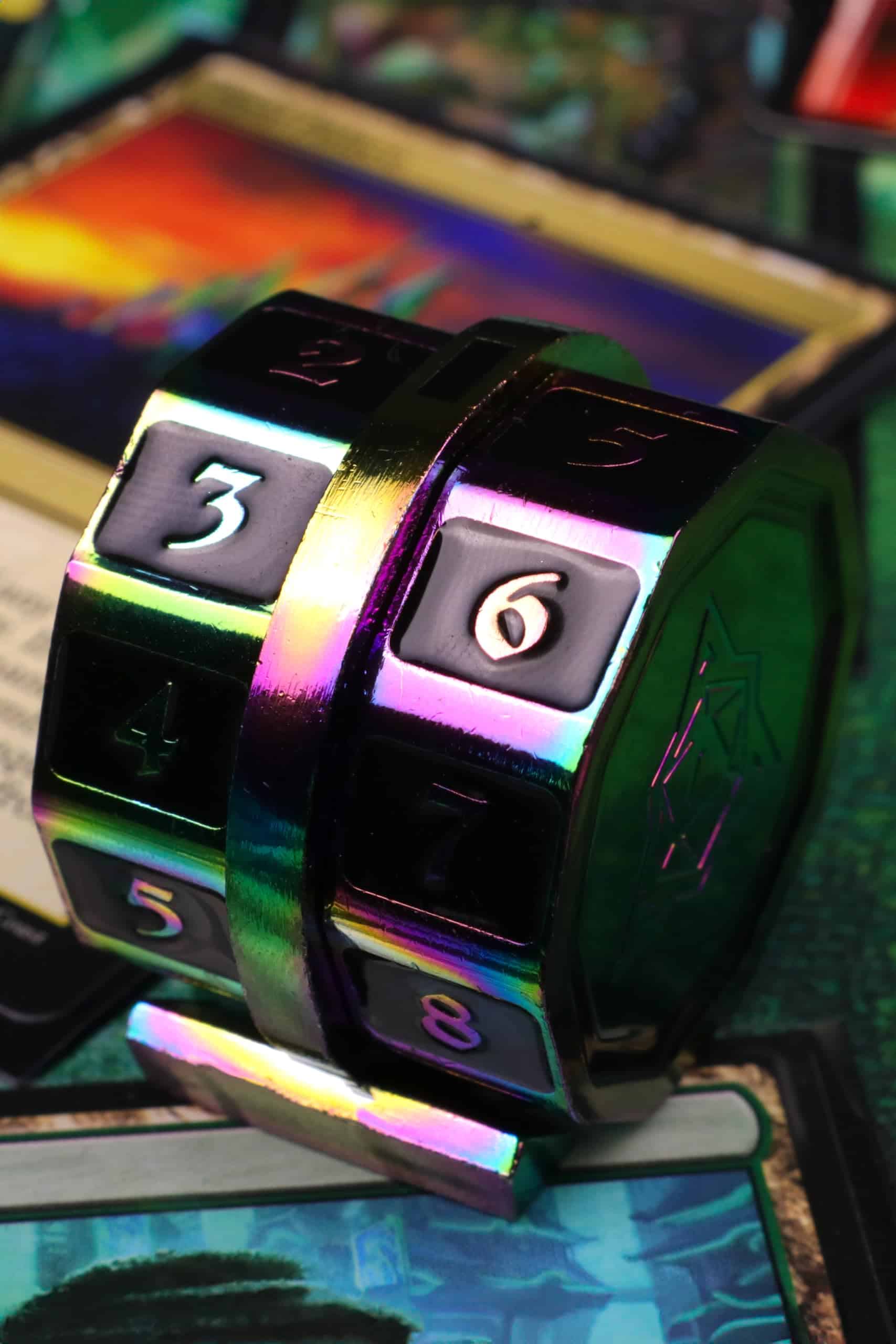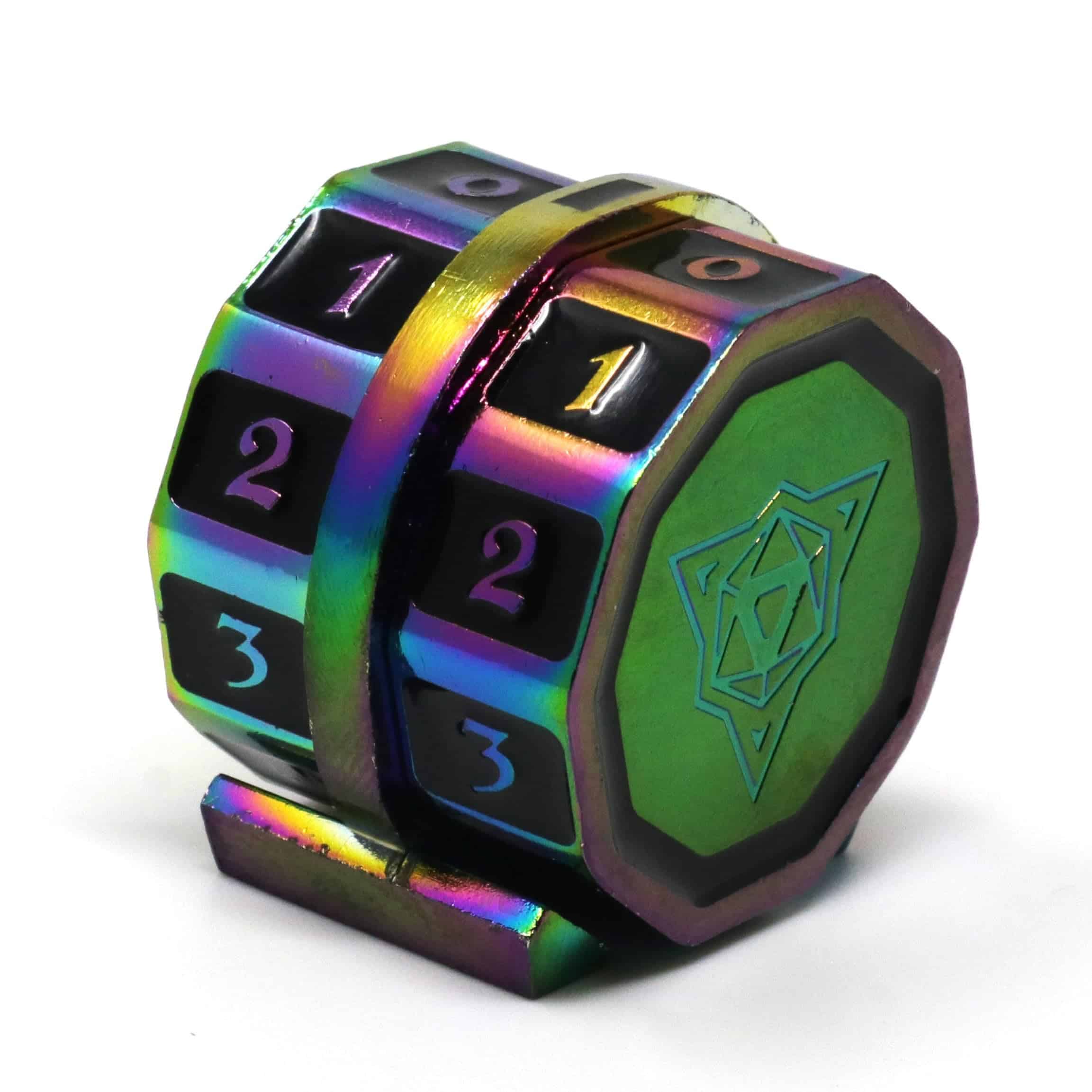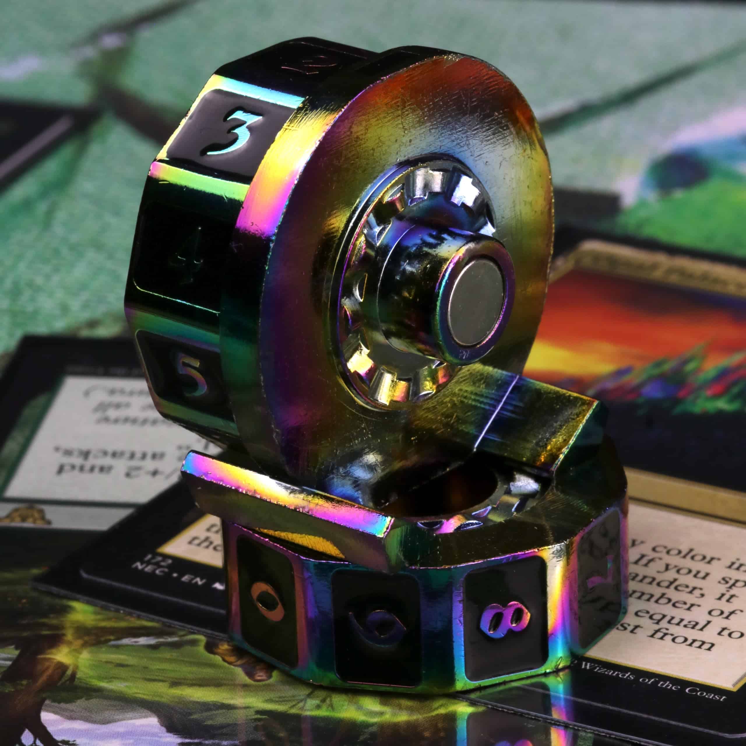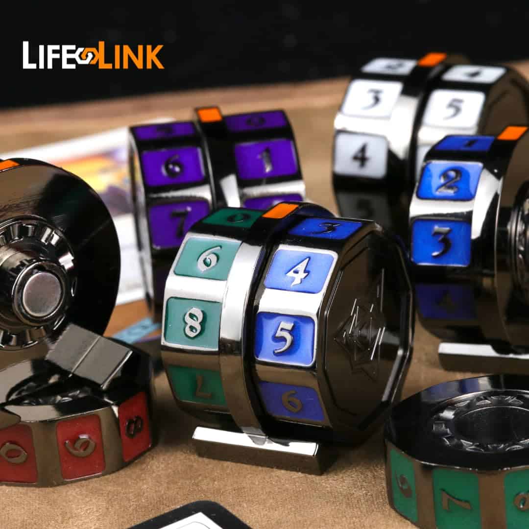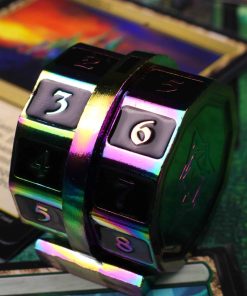«Toma el mando de la mesa con el Contador de Vida LifeLink! Forjado en metal, este sólido contador de vida es ideal para tu juego de cartas favorito de la costa hechicera! ¡Colores temáticos están disponibles para que coincidan con tus mazos en azul, verde, rojo, blanco y negro! ¿Necesitas más de un color? ¡Die Hard Dice tiene cubierto! ¡Los Contadores de Vida LifeLink son REMIXABLES! Unidos con un imán fuerte, puedes combinar y mezclar tus contadores de vida para crear contadores de doble color que coincidan con tu estilo. CARACTERÍSTICAS: Gira fácilmente y se mantiene firmemente en su lugar con nuestro diseño patentado para ayudarte a llevar un seguimiento de tus puntos de vida. Plateado brillante con incrustaciones de gema azul. Combina y mezcla, intercambia ruedas de color con amigos. ¡Viene con 2 ruedas de contador de vida arcoíris (derecha e izquierda) y la base central!»