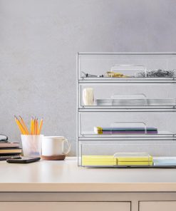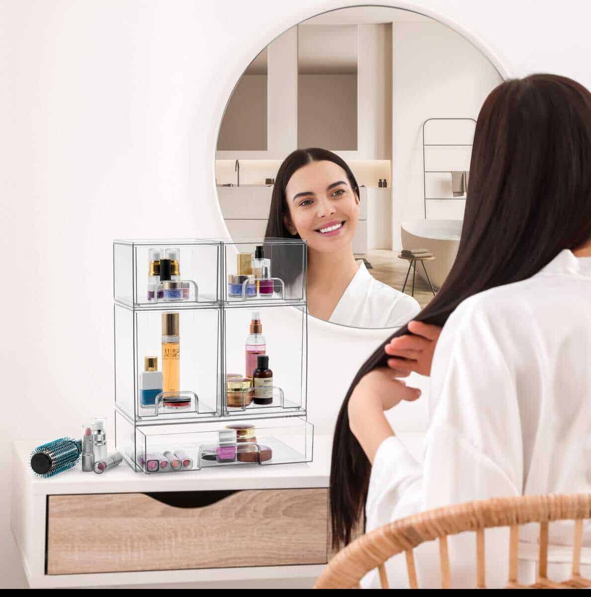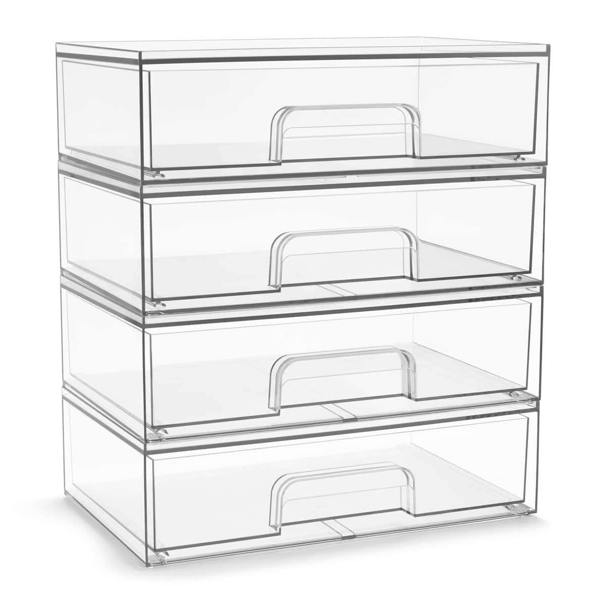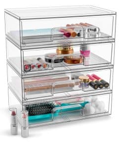1. Organizadores de cajones transparentes de Sorbus: Organizador apilable para almacenamiento multifuncional. Personaliza tu espacio con este organizador acrílico para el baño para una organización interminable.