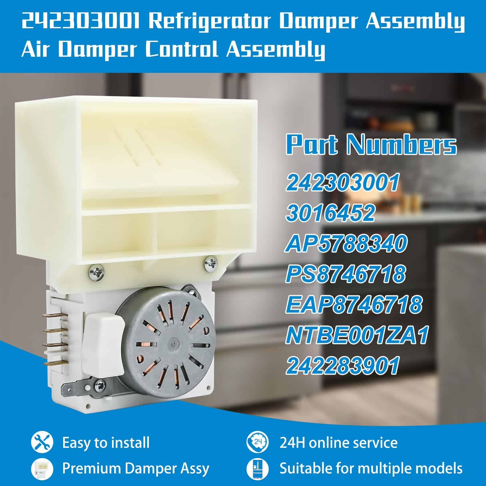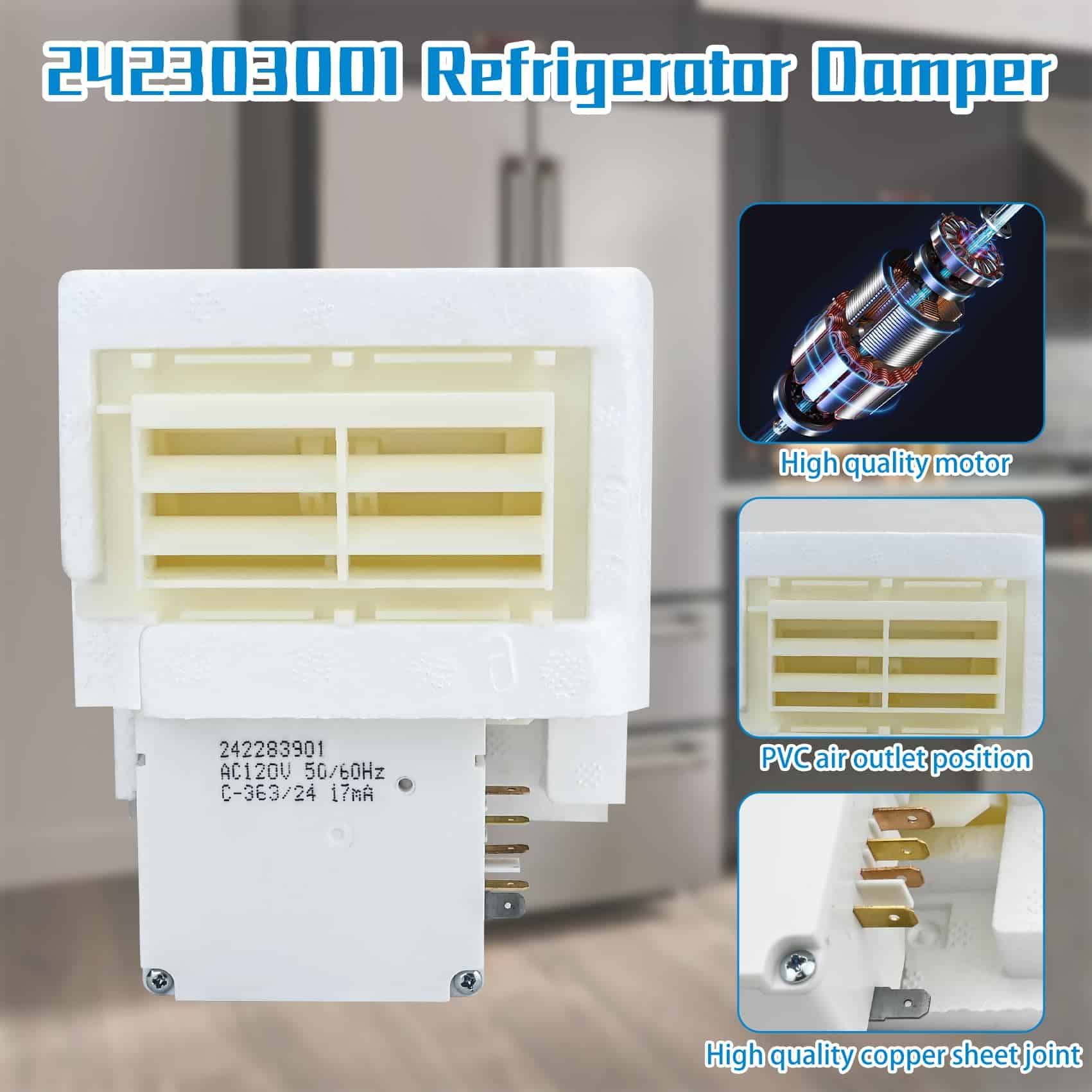 1. Fácil instalación – Reemplace su control de compuerta defectuoso con este ensamble de control de compuerta 242303001. La instalación es sencilla, desconecte la energía, retire unos cuantos tornillos e instale la nueva pieza. No es necesario un técnico, haga que su refrigerador vuelva a funcionar sin problemas en poco tiempo. 2. Duradero y confiable para un rendimiento a largo plazo – Hecho con materiales de alta calidad, este ensamble de compuerta 242303001 está construido para durar, asegurando durabilidad y confiabilidad a largo plazo. Diseñado para resistir el desgaste diario, esta parte mantendrá su refrigerador enfriando de manera eficiente durante meses o incluso años. 3. Resuelve problemas de enfriamiento comunes rápidamente – Cuando se enfrenta a problemas como su refrigerador estando demasiado frío o no enfriando lo suficiente, el ensamble de control de compuerta de aire 242303001 ayuda a regular el flujo de aire frío, evitando problemas como congelación de alimentos o secciones de la nevera calientes. Si tiene códigos de error como H1 o temperaturas inconsistentes, esta parte proporciona la solución, restaurando la eficiencia de enfriamiento óptima. 4. Amplia compatibilidad con múltiples marcas – Esta compuerta 242303001 es compatible con varios refrigeradores Frigidaire, Crosley, y White-Westinghouse. Reemplaza los números de parte 3016452, AP5788340, PS8746718, EAP8746718, NTBE001ZA1 y 242283901, asegurando un ajuste perfecto para sus modelos de refrigerador lado a lado u otros modelos de refrigerador compatibles. Consulte la lista de modelos compatibles en los detalles del producto para asegurarse de que funcione para su electrodoméstico. 5. Garantía de 365 días y soporte – Ofrecemos una garantía de 365 días en este control de compuerta 242303001, asegurando tranquilidad con cada compra. Si encuentra algún problema durante la instalación o tiene preguntas de compatibilidad, nuestro equipo de soporte al cliente está aquí para ayudar, proporcionando soluciones en 24 horas. ¡Su satisfacción es nuestra prioridad!