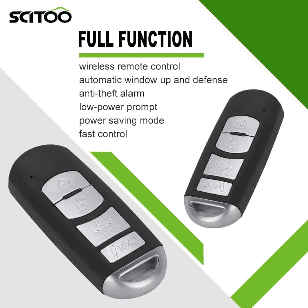 4. FUNCIONALIDAD COMPLETA: botón sensible para un rápido bloqueo y desbloqueo, elevación automática de ventanas, alarma antirrobo, modo de ahorro de energía, control remoto inalámbrico, lanzamiento de largo alcance, etc.