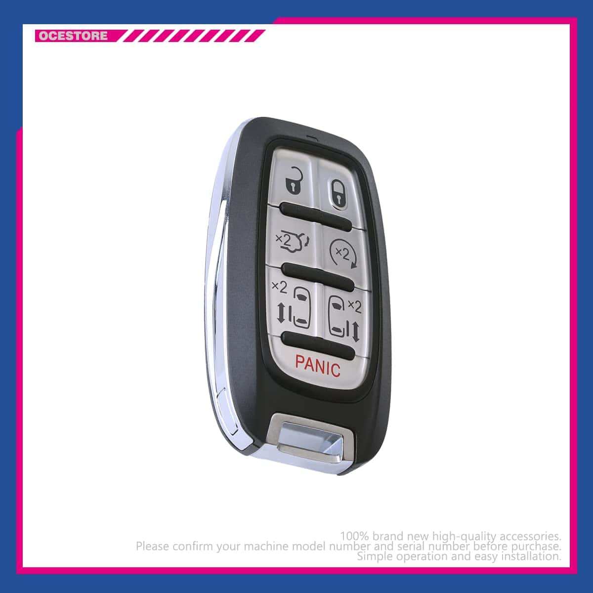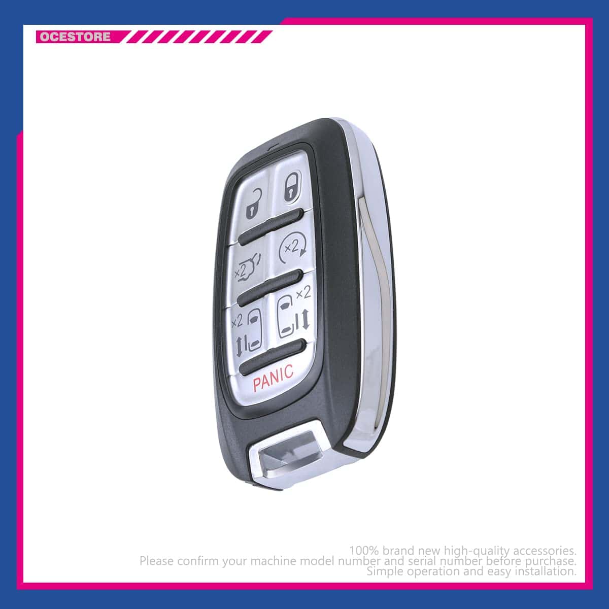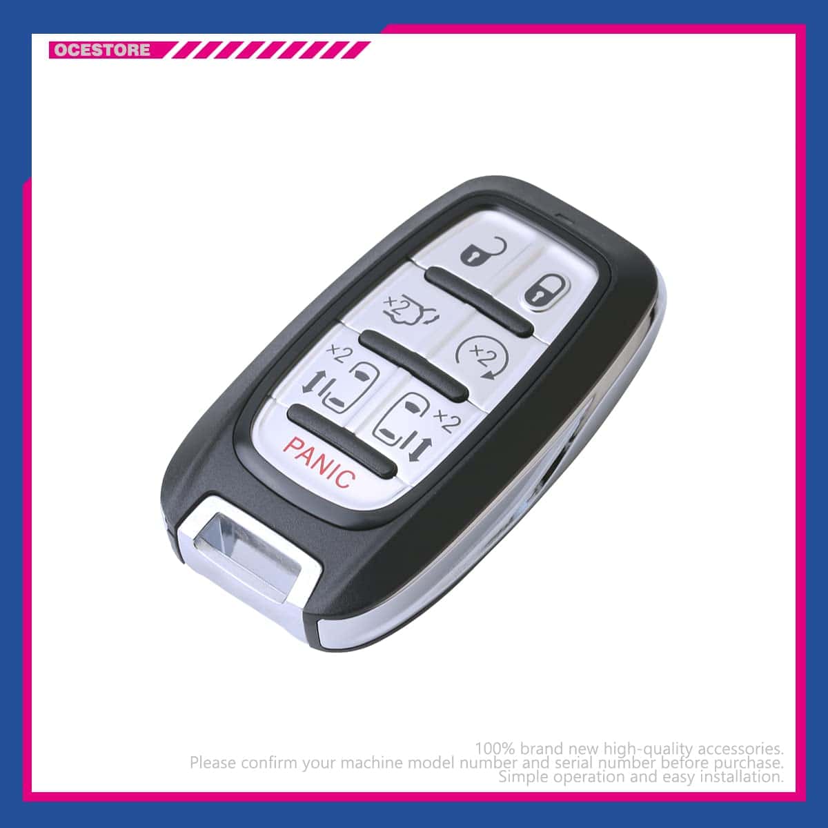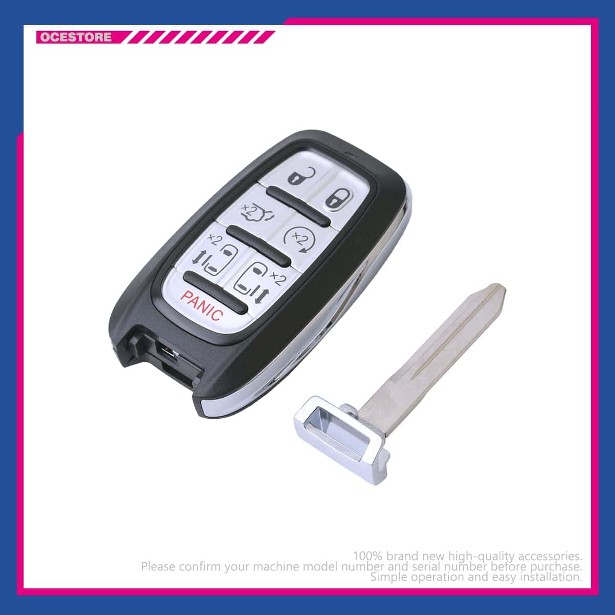 El control remoto de entrada sin llave para automóvil OCESTORE M3N-97395900 con 7 botones es perfecto para reemplazar rápidamente y fácilmente su control remoto de llave de automóvil perdido o roto. Nota: funcionará si su llave original tiene la función inteligente o de proximidad. Es compatible con Pacifica 2017-2020 y Voyager 2020. Viene con baterías y ha sido preprobado para garantizar calidad y funcionalidad. Incluye una garantía de 12 meses.