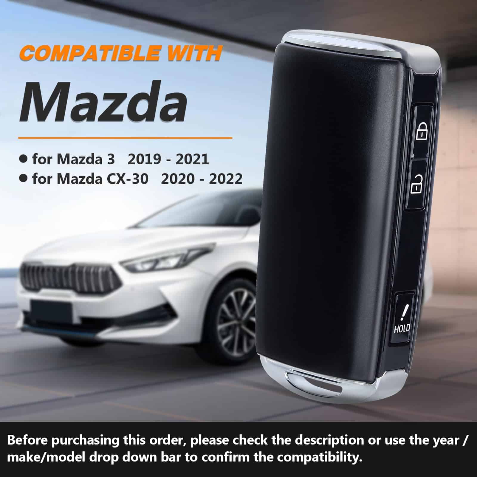 2. COMPATIBILIDAD: Compatible con Mazda 3 Hatchback 2019-2021, Mazda CX-30 2020-2022. Por favor verifique la descripción o use el año/marca/modelo para confirmar la compatibilidad, asegúrese de que su llave sea exactamente igual que la nuestra (la misma forma, botones).