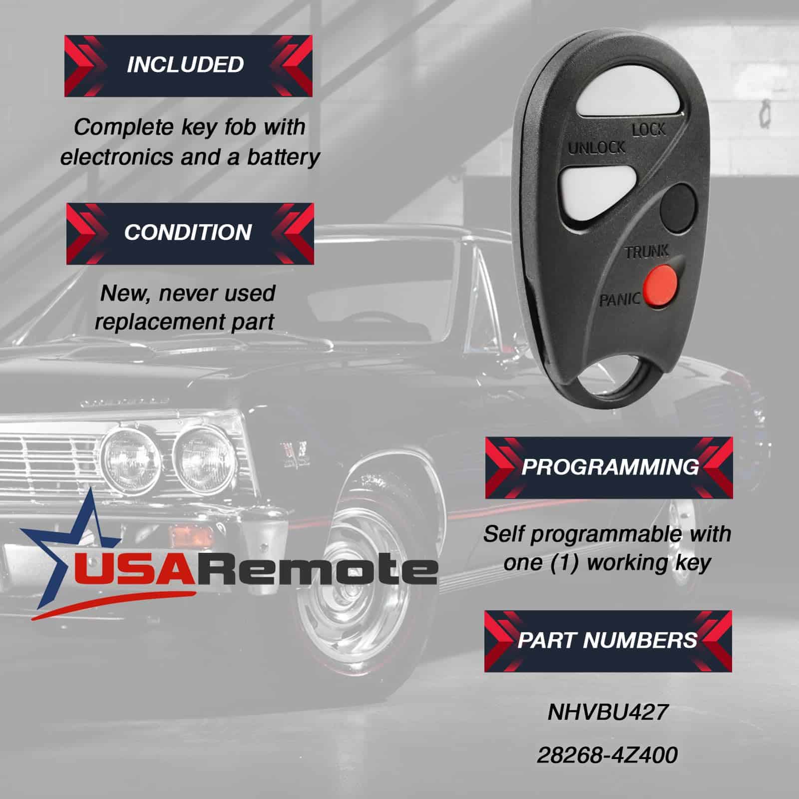 Control remoto de entrada sin llave para llavero de automóvil compatible con Nissan Sentra 2000 2001 2002 2003 2004 (NHVBU427)