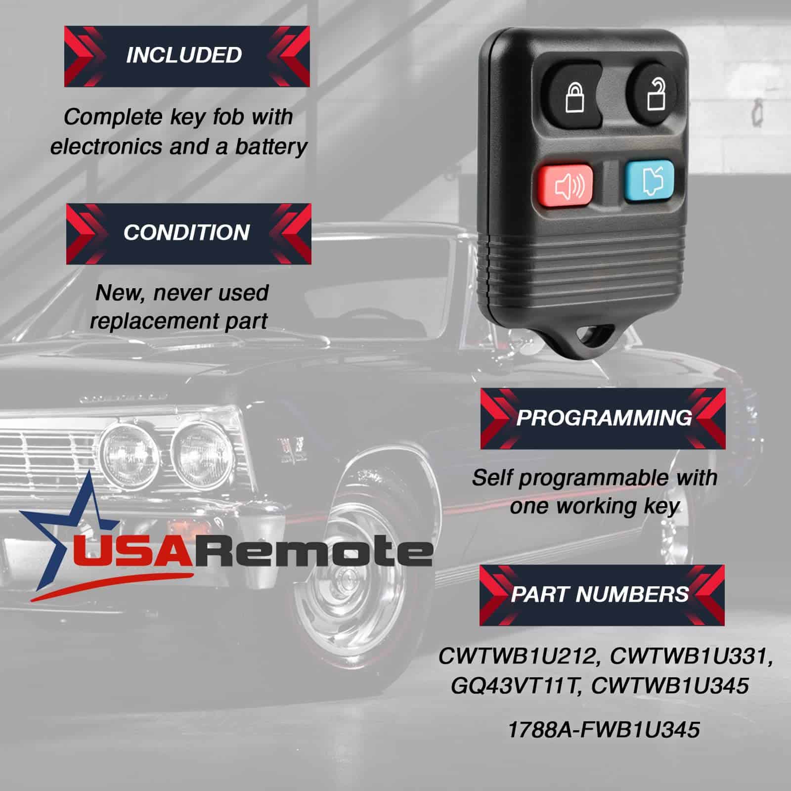 3. REEMPLAZO ECONÓMICO DE CONTROL REMOTO DE LLAVE DE AUTOMÓVIL – El control remoto de llave de entrada sin llave USARemote es compatible con los números de parte CWTWB1U345, CWTWB1U212, CWTWB1U331, GQ43VT11T.