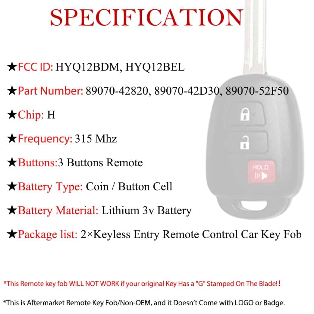 Control Remoto de Llave de Coche de Repuesto para Toyota