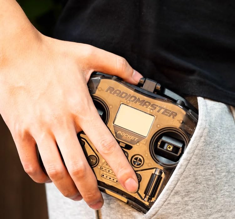 1. Este RadioMaster POCKET está diseñado para ser portátil, con antenas plegables y un joystick desmontable.