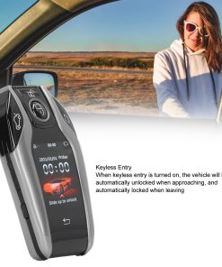 Características: 1. Pantalla táctil LCD: La llave inteligente de coche con pantalla LCD, el marco está hecho de material de aleación, con un brillo metálico y durabilidad aumentada. La marca del coche y el modelo 3D se muestran en la pantalla con interruptor personalizable. 2. Botones físicos y pantalla táctil: La llave inteligente de coche puede operarse para bloquear, desbloquear, abrir y cerrar el maletero. 15 días de espera normal, 200 días de uso normal de las llaves físicas. 3. Entrada sin llave: Cuando se activa la entrada sin llave, el vehículo se desbloqueará automáticamente al acercarse y se bloqueará automáticamente al alejarse, o se puede configurar para solo bloquear o desbloquear, y admite configuraciones de distancia de detección. 4. Bloqueo de puertas y elevación de ventanas: Configurar el tiempo correspondiente según el tiempo total desde el bloqueo del coche original hasta la finalización de la elevación de la ventana. Esta función requiere que el coche original tenga la función de bloqueo del coche o presión larga para elevar la ventana. 5. Función anti pérdida: La llave de coche inteligente LCD tiene una función antipérdida, que puede configurar el número de teléfono del propietario, que se puede utilizar para contactar al propietario después de perder la llave del coche.