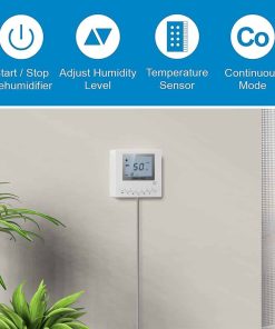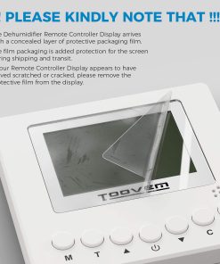El control remoto TooVem viene equipado con un Monitor LCD grande y un indicador de condiciones simple con símbolos. La pantalla azul retroiluminada muestra la humedad y temperatura del área donde se encuentra el deshumidificador comercial, permitiéndote obtener los datos de un vistazo. El control de deshumidificador montado en pared contiene un sensor integrado extremadamente sensible que te informa rápidamente del nivel de confort de la habitación. Esta unidad es fácil de instalar, monta el controlador en la pared para ajustar de forma remota el nivel de humedad deseado cuando el deshumidificador está en otra habitación. Para mayor comodidad, puedes colocarlo en el espacio habitable o en el garaje. Función: Encendido / Apagado del deshumidificador, Configuración del nivel de humedad, Cambio de modo de deshumidificación y conducto, Sensor de temperatura, Modo continuo, Control de bomba de drenaje (si corresponde). Control remoto para las series Sentinel HD55P, HD55, HD55S, HDi65S, HD90, HDi90, HDi100, HDi120, series Guardian SN55, SNS65, SN90, SNS90, SNS100, SNS120, AirWerx55, AirWerx65, AirWerx100X, AirWerx120X.