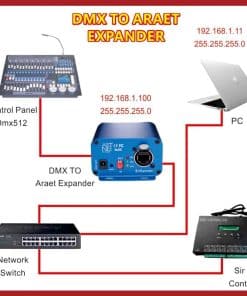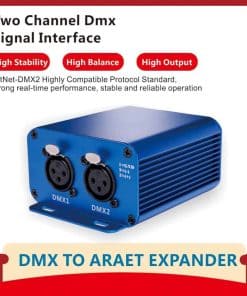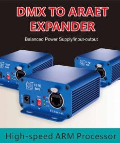 ArtNet-DMX2 es un convertidor Ethernet a DMX bidireccional. Proporciona capacidad de conversión bidireccional de serie ArtNet a DMX512 en red de dos vías. Es un procesador ARM de alta velocidad, sigue el protocolo estándar ArtNet, proporciona una interfaz de red RJ45 estándar y una interfaz de salida DMX512. ArtNet-DMX2 standard de protocolo altamente compatible, en tiempo real, estable y fiable. Ha sido diseñado para transportar DMX a través de un Ethernet. que tiene dos modos de funcionamiento: modo NODO y modo SERVIDOR. El modo NODO convierte la señal ArtNet en DMX512. El modo SERVIDOR ruta la señal DMX512 (X2) a ArtNet a través de la transmisión Ethernet.