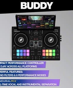 1. Form-factor meets functionality. 2. Fully feature-packed. 3. Versatile connectivity. 4. Sturdy companion. 5. Incluye controles extensos de neural mix (modo pad/EQ) para aislar beats, instrumentos y vocales de cualquier canción en tiempo real para aún más posibilidades de mezcla creativa.