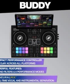 Este controlador de DJ de 2 canales compacto y potente fue diseñado y desarrollado en estrecha colaboración con Algoriddim para lograr la integración más cercana posible con su galardonada aplicación de DJ. Ahorrando espacio sin comprometer la funcionalidad, el Reloop Buddy ofrece a los DJs de cualquier nivel todas las herramientas que necesitan para actuar de manera creativa y eficiente a un alto nivel.