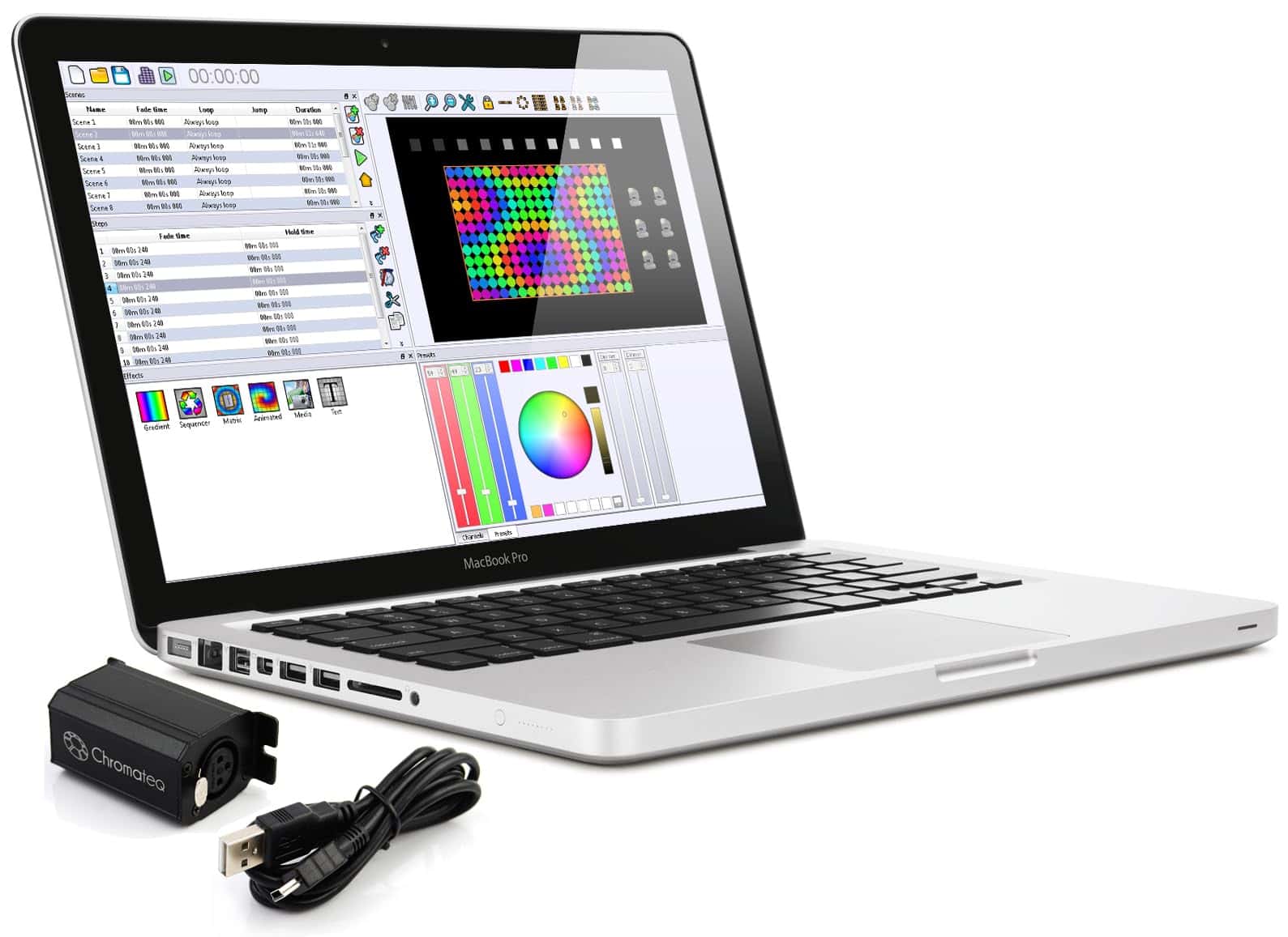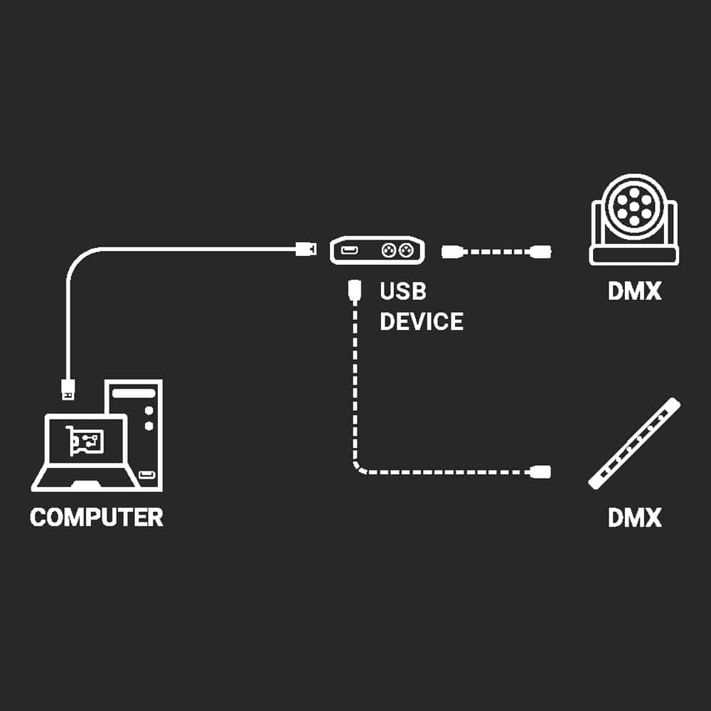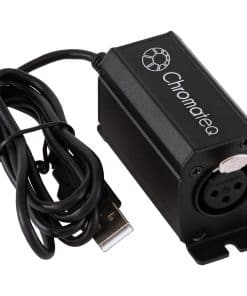 Chromateq LP 32 USB DMX Interface & Software es compatible con el económico software LED Player, siendo el controlador USB a DMX más económico de Chromateq. Perfecto para proyectos que sólo requieren unos pocos canales de control DMX, para pruebas, o como paquete promocional para programadores de iluminación novatos. Características Principales: – Controlador DMX Live y Stand Alone – 32 Canales DMX en modo Live – 32 Canales DMX en modo Stand Alone – Compatible con LED Player & Pro DMX Software – Memoria Stand Alone: 300 ~ 55 pasos – Carcasa de aluminio resistente – Dimensiones: H: 40mm / W: 31mm / D: 75mm – Peso: 115g – Certificaciones: CE, RoHS