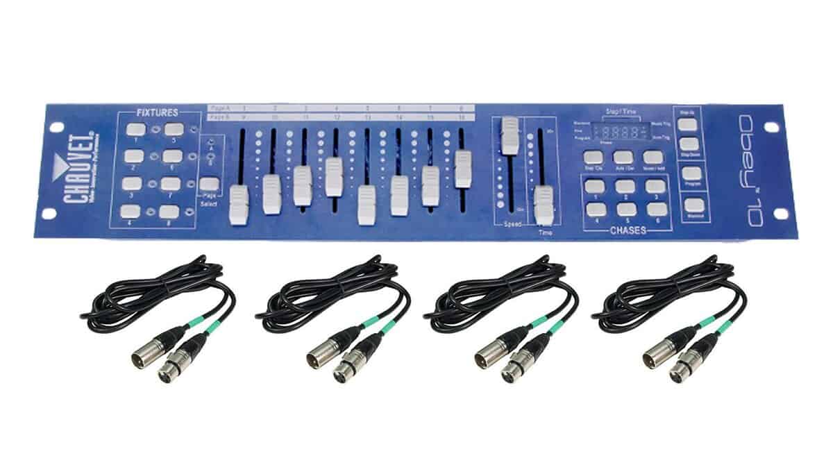 Controlador de iluminación LED universal Chauvet DJ Obey 10 DMX-512 con cables de 10′ + 25′ DMX.