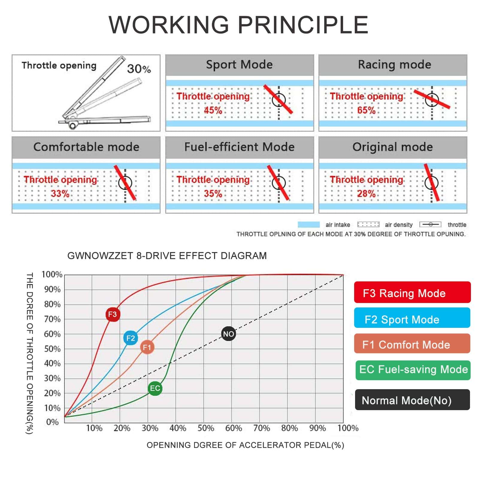 3. 9 MODOS DE CONDUCCIÓN – El Controlador de Acelerador de Pedal incluye 8 modos de conducción diferentes y 9 niveles de fuerza ajustables en cada modo de conducción. Puedes encontrar el modo y nivel más adecuado en diferentes tipos de carreteras o experiencias de conducción diferentes.