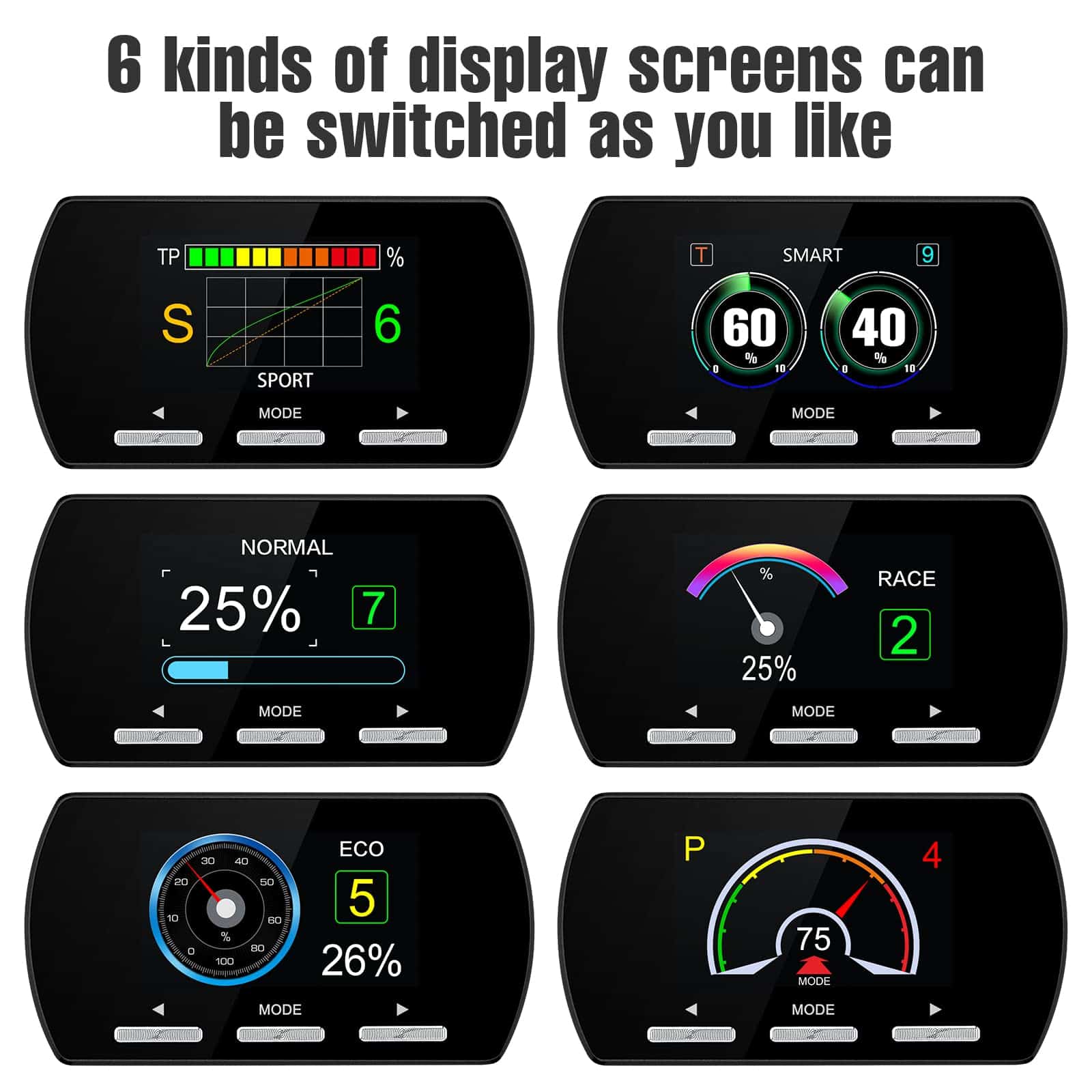 3. Pantalla clara y fácil ajuste El acelerador electrónico tiene una pantalla LED de 3 caracteres y 3 botones ajustables. Puedes ver el número de modo y el nivel de intensidad en la pantalla, y puedes ajustar fácilmente el modo a través de los botones.