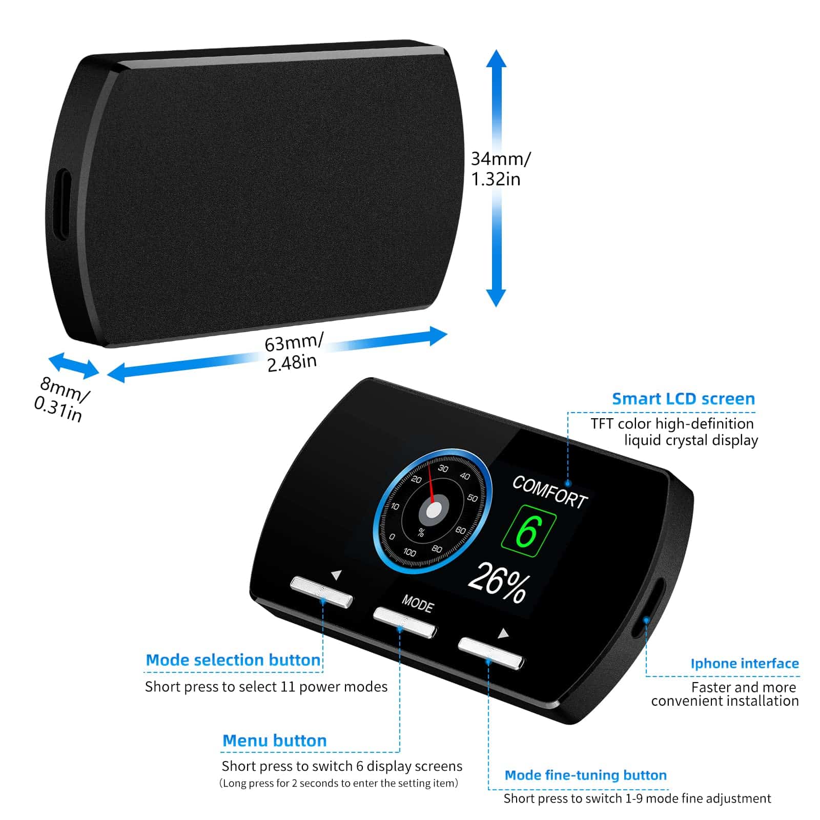 5. Tamaño pequeño, portátil y fácil de instalar Ultrafino equipado con conector USB de teléfono, instala este acelerador cuando el coche está apagado, sigue el manual del usuario o las fotos de instalación para operar, enchufar y listo. Todas las ajustes deben ser convenientes durante la conducción segura.