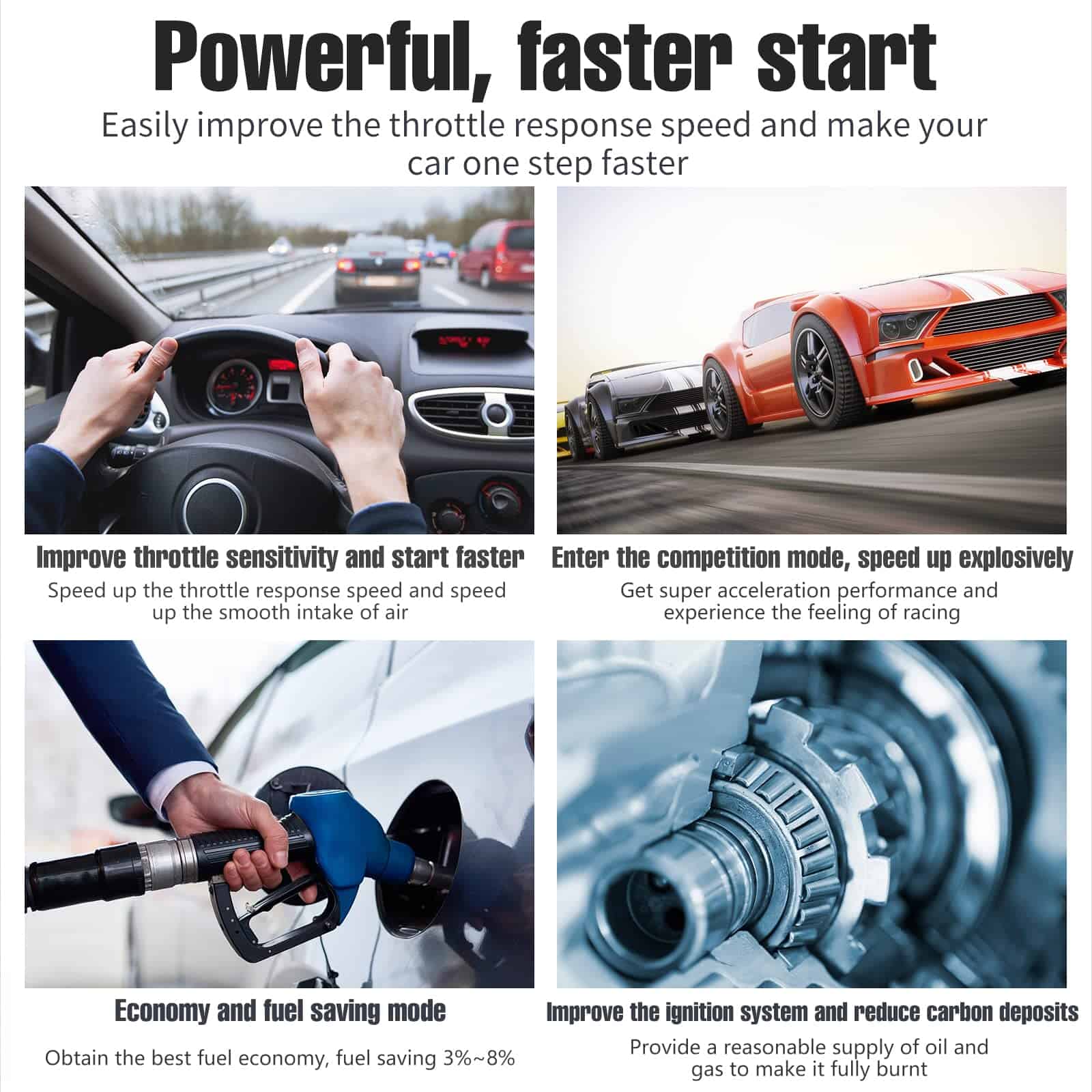 1. FUNCIONES – El acelerador electrónico elimina los retrasos de respuesta en el pedal del gas electrónico, mejora la sensibilidad del coche para adaptarse a diferentes hábitos de manejo. ¡Es como conducir un coche nuevo todos los días, es asombroso!.